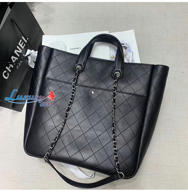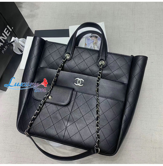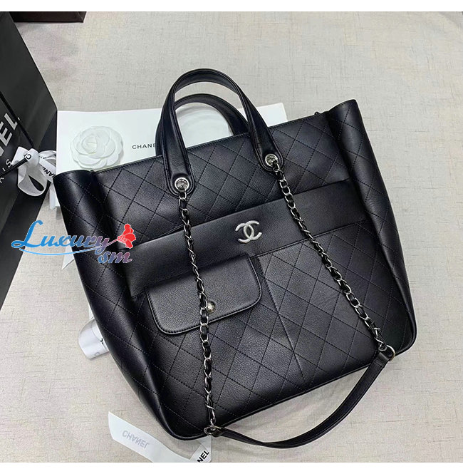 [스페셜오더]CHANEL-AS1299 샤넬 블랙 카프스킨 실버메탈 라지 지퍼 쇼핑백