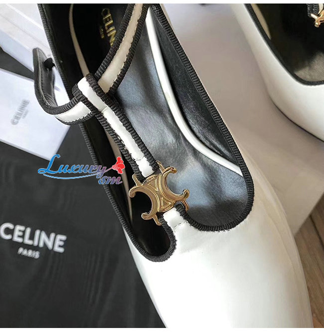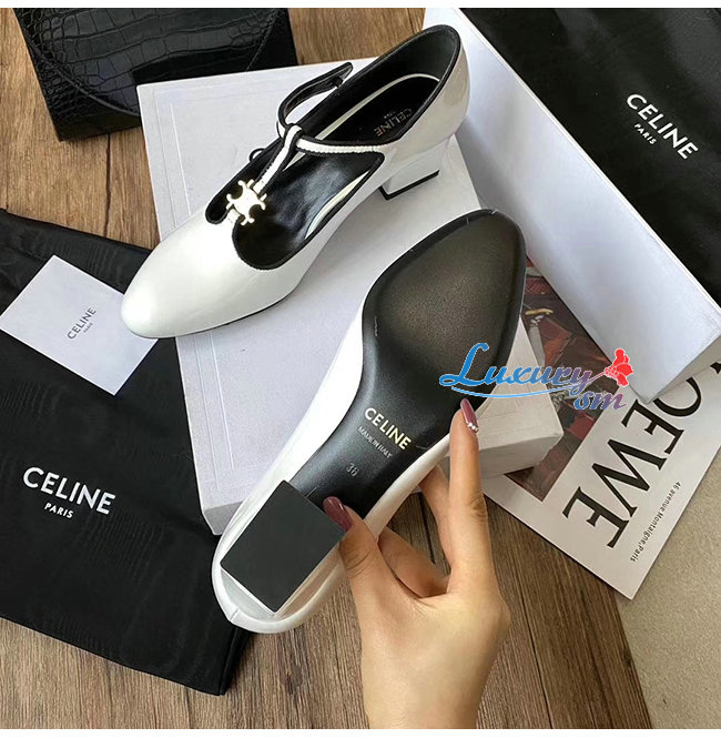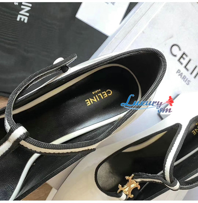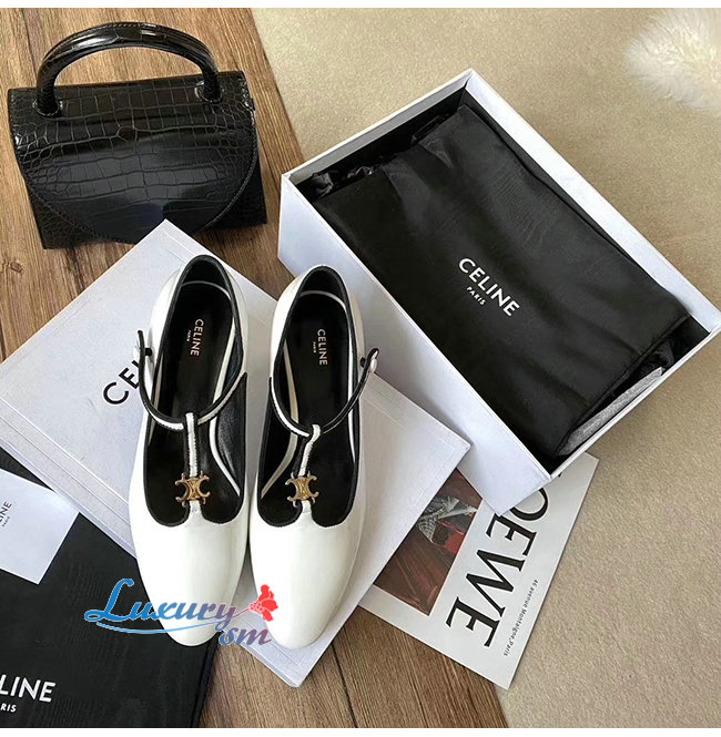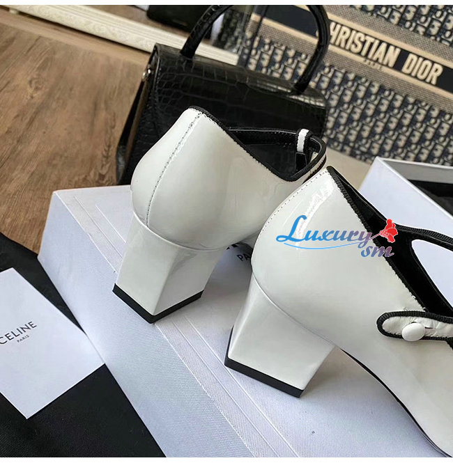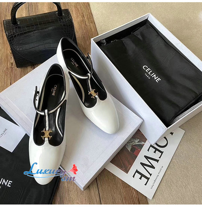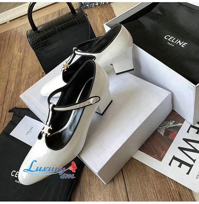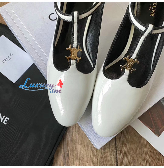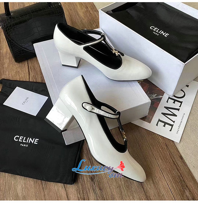 CELINE-333893 셀린느 화이트 페이턴트 카프스킨 T-BAR 펌프스