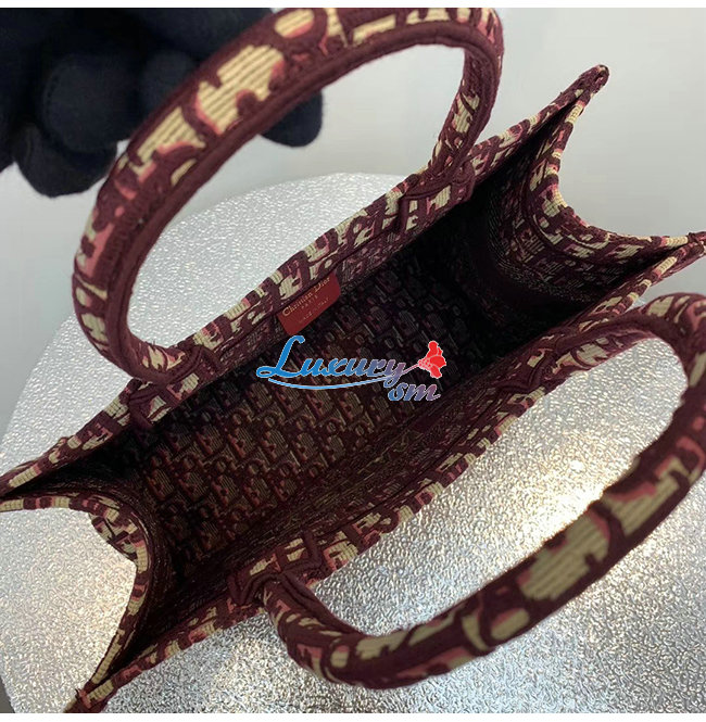 [스페셜오더]DIOR-M1296 디올 버건디 BOOK TOTE DIOR OBLIQUE 자수 스몰 백