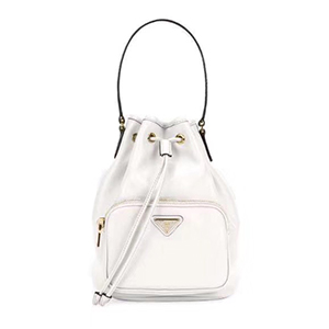 [스페셜오더]PRADA-1BH038 프라다 화이트 송아지 가죽 에나멜 트라이앵글 로고 버킷백