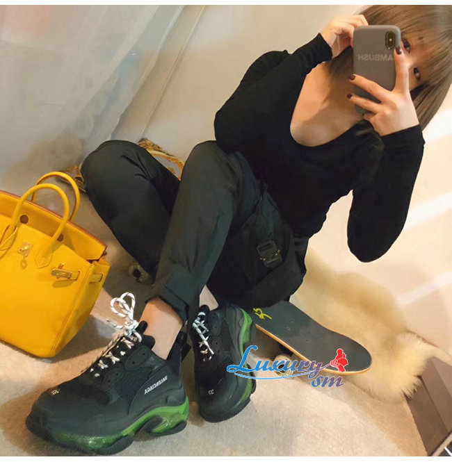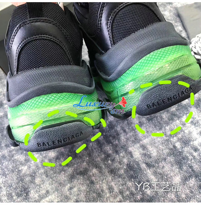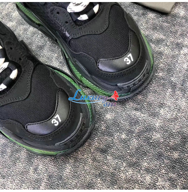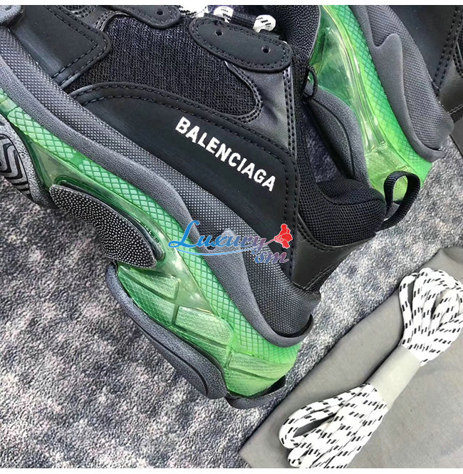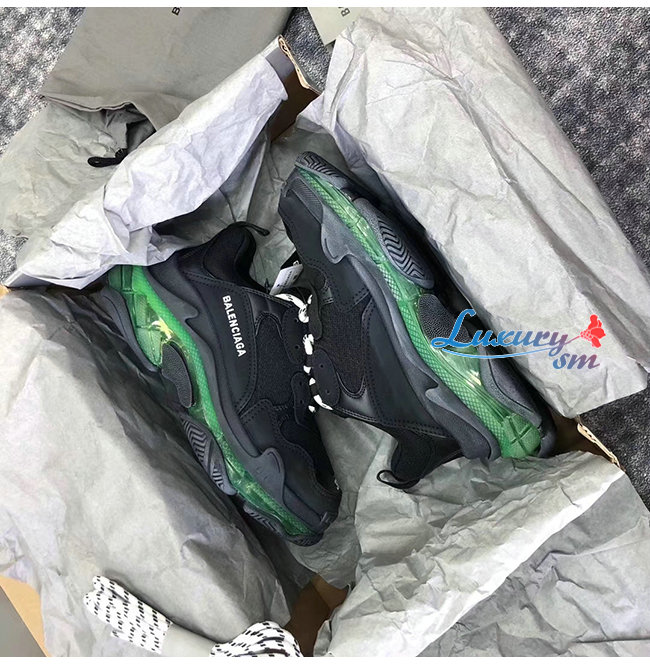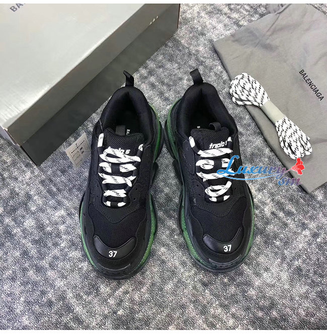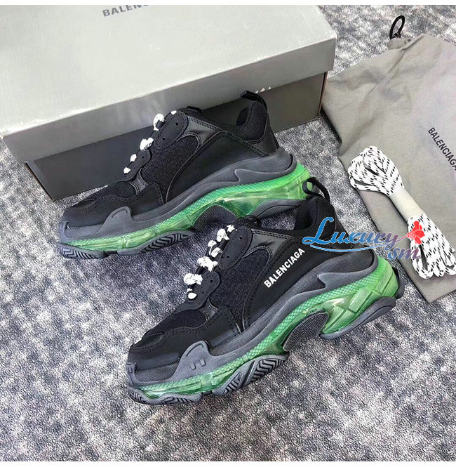 BALENCIAGA-544351 발렌시아가 블랙/그린 TRIPLE S 클리어 솔 스니커즈 남여공용