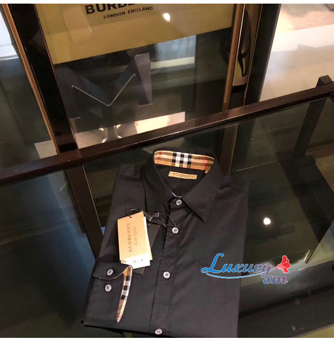 BURBERRY-80087061 버버리 블랙 코튼 스트레치 포플린 셔츠