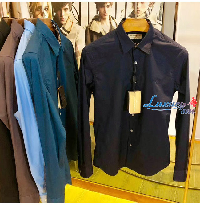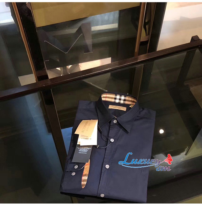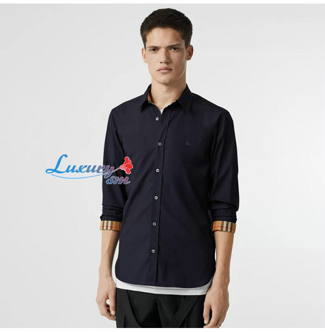 BURBERRY-80087051 버버리 네이비 코튼 스트레치 포플린 셔츠