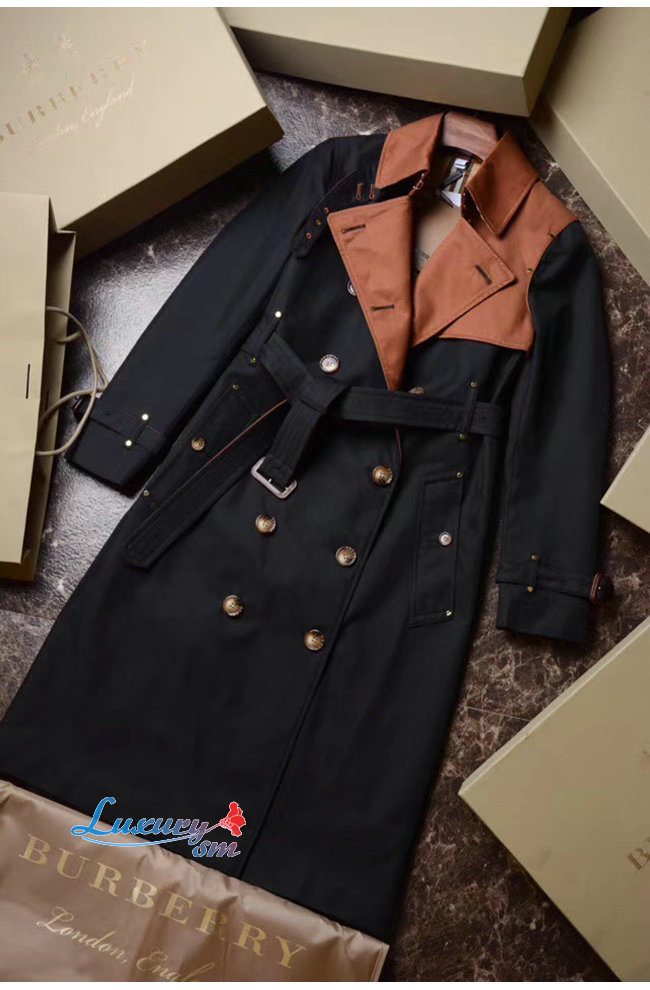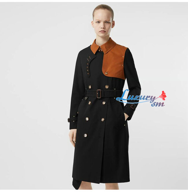 BURBERRY-80186811 버버리 블랙 투톤 코튼 개버딘 트렌치코트