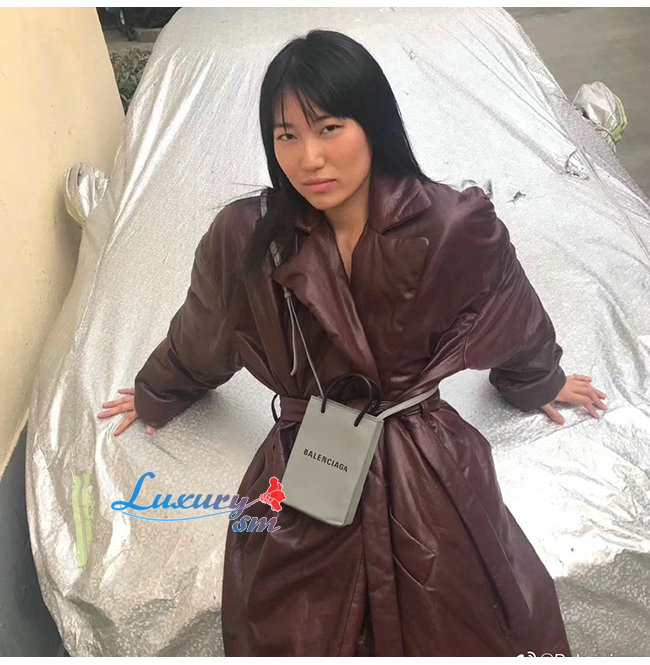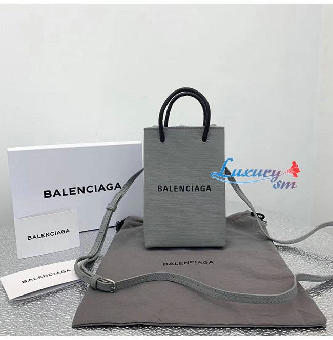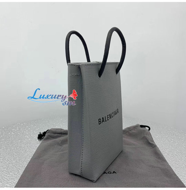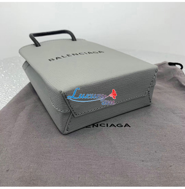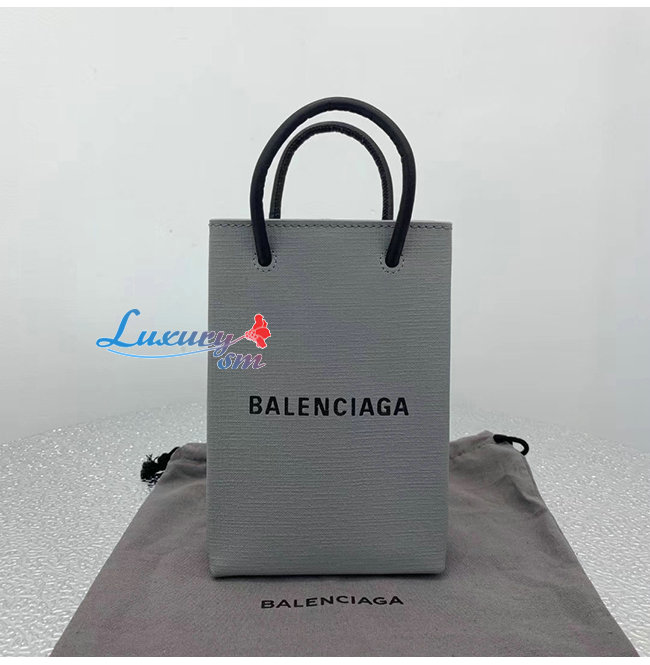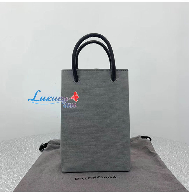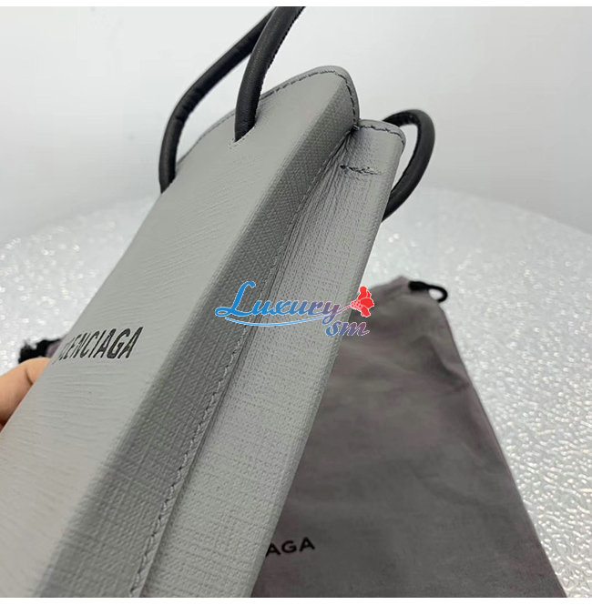 [스페셜오더]BALENCIAGA-593826 발렌시아가 그레이 스퀘어 송아지 가죽 쇼핑 휴대폰 지갑 백