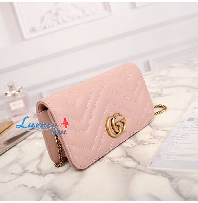[스페셜오더]GUCCI-488426 구찌 GG Marmont 핑크 마틀라세 가죽 미니 백