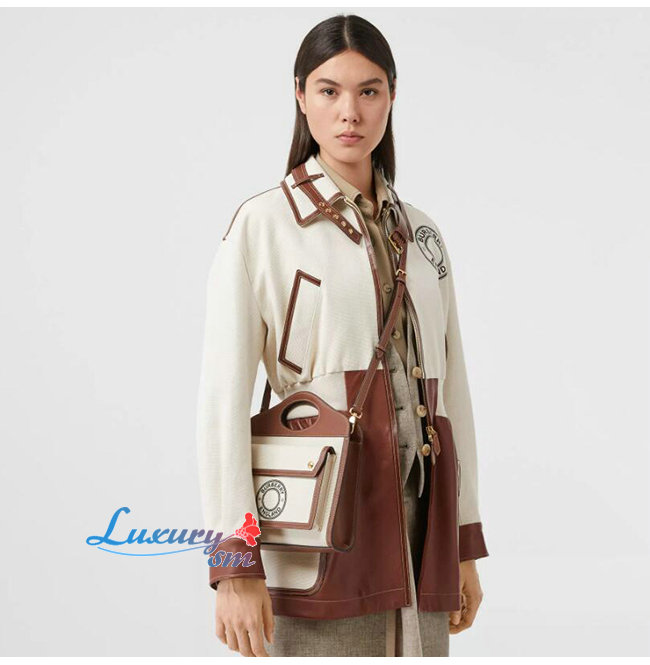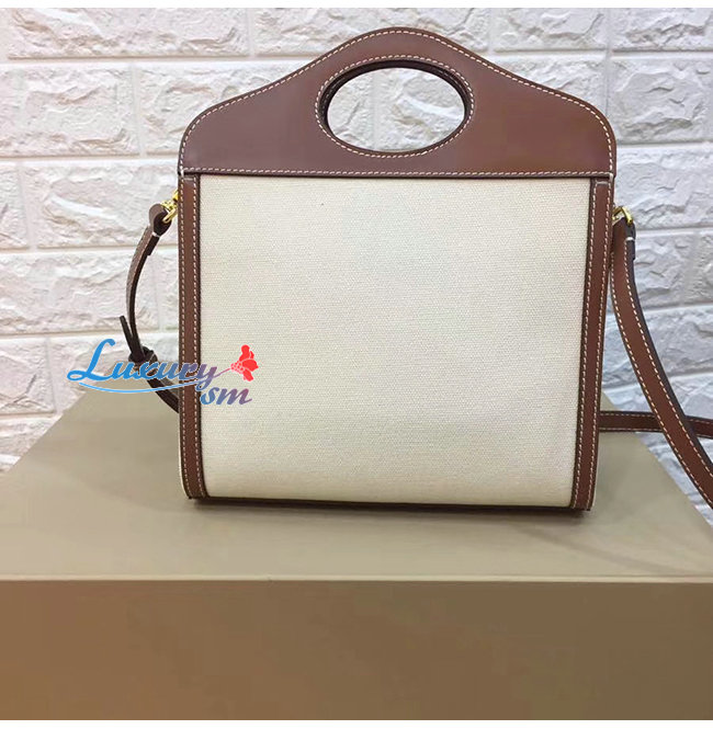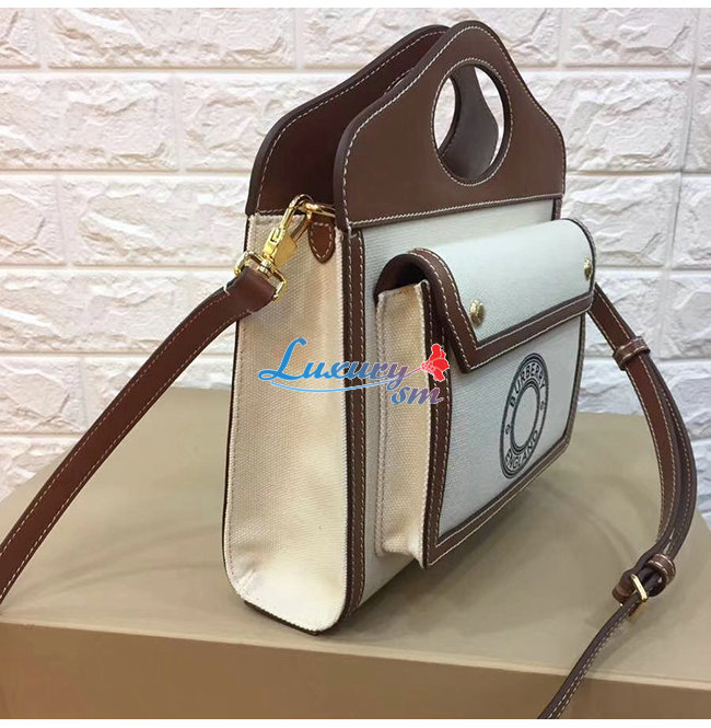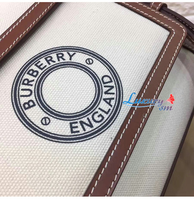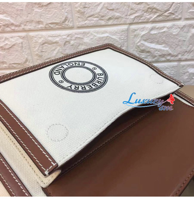 [스페셜오더]BURBERRY-80280581 버버리 탠/화이트 미니 로고 그래픽 캔버스 레더 포켓 백