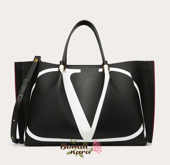 [스페셜오더]VALENTINO-RW0B0 발렌티노 블랙 미디엄 VLOGO 화이트 인레이 로고 이스케이프 쇼퍼백