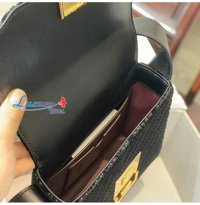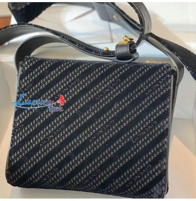 블랙 벨벳 소재의 스몰 에덴 메신저 백,체인 및
