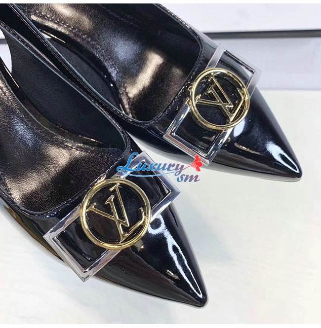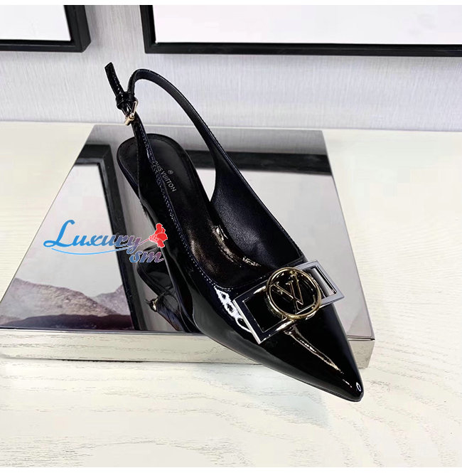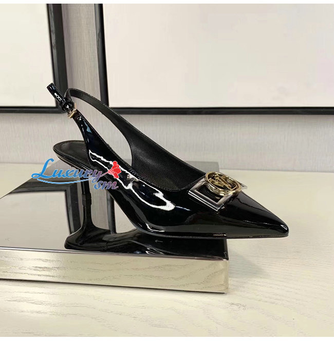 LOUIS VUITTON-1A66C0 루이비통 블랙 페이턴트 소가죽 인사이더 슬링백 펌프스