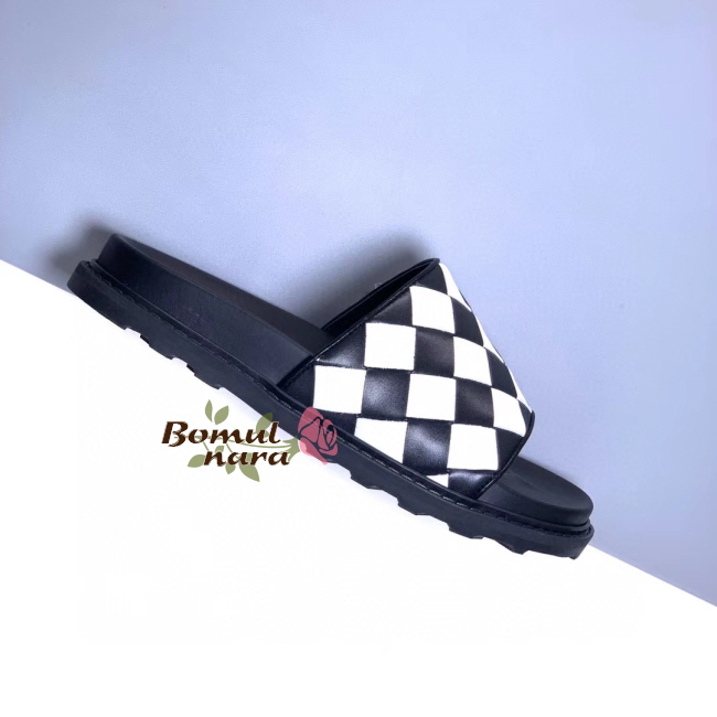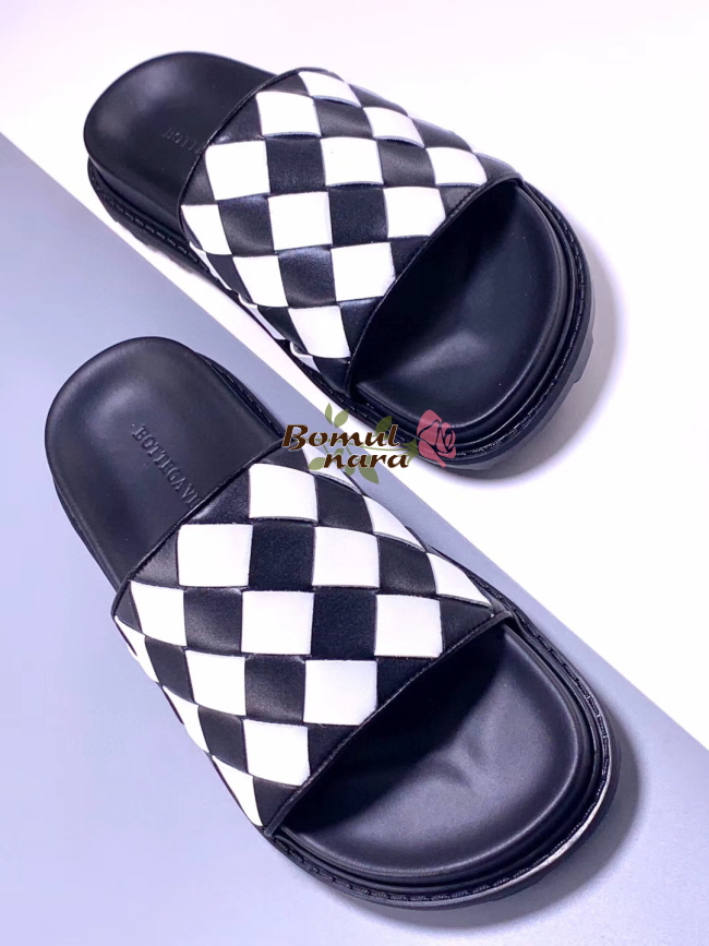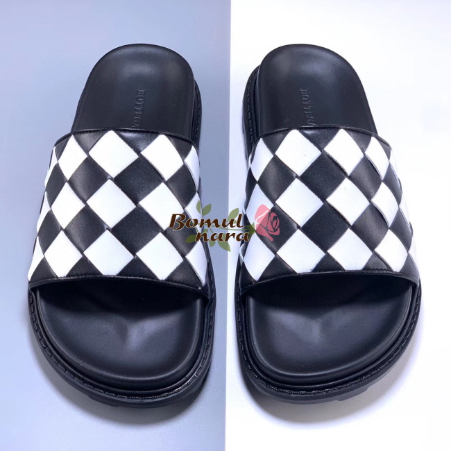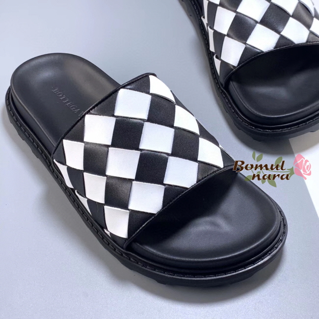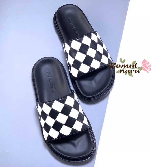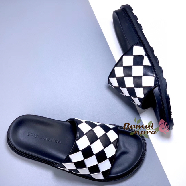 [스페셜오더]BOTTEGA VENETA-578264 보테가 베네타 블랙/화이트 인트레치아토 슬라이드 남성 샌들