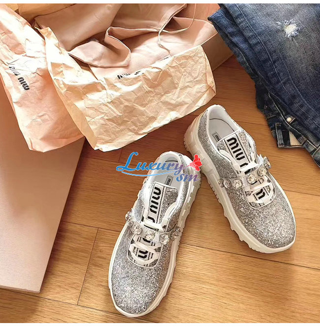 MIUMIU-5E761C 미우미우 실버 글리터 패브릭 스니커즈