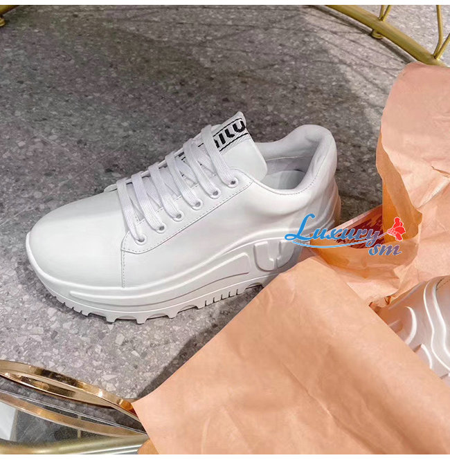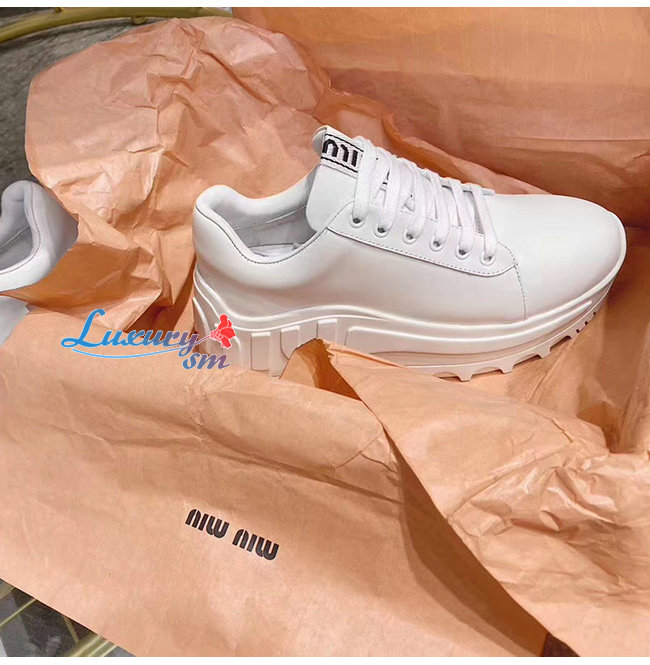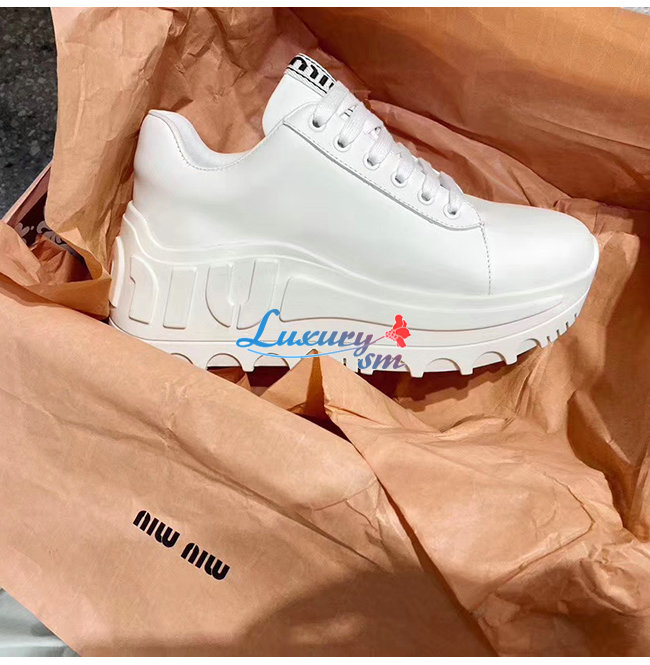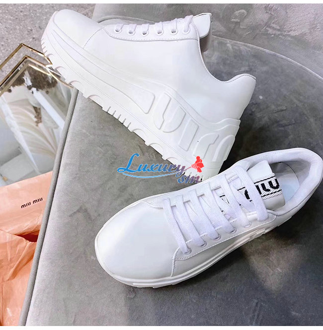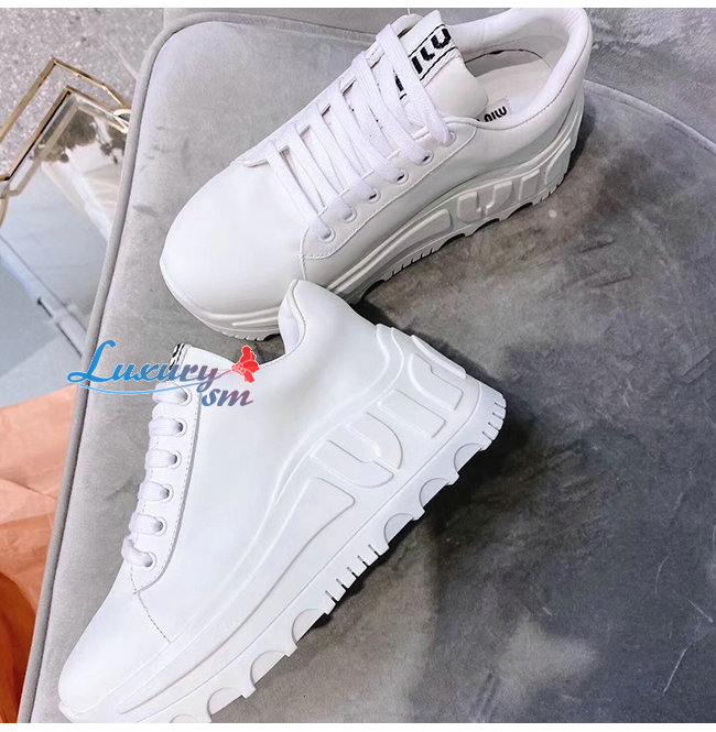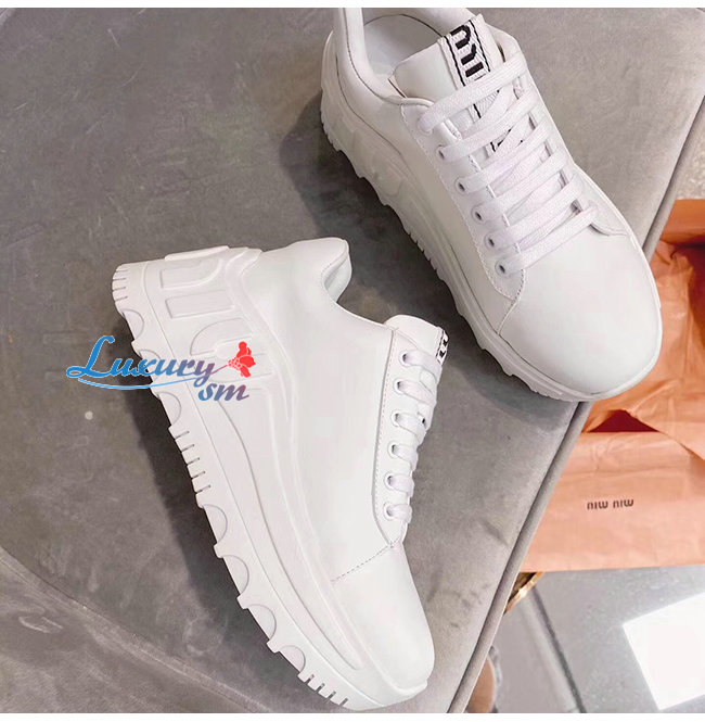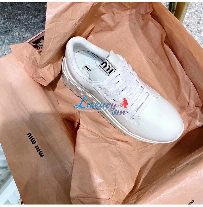 MIUMIU-5E758C 미우미우 화이트 송아지 가죽 스니커즈