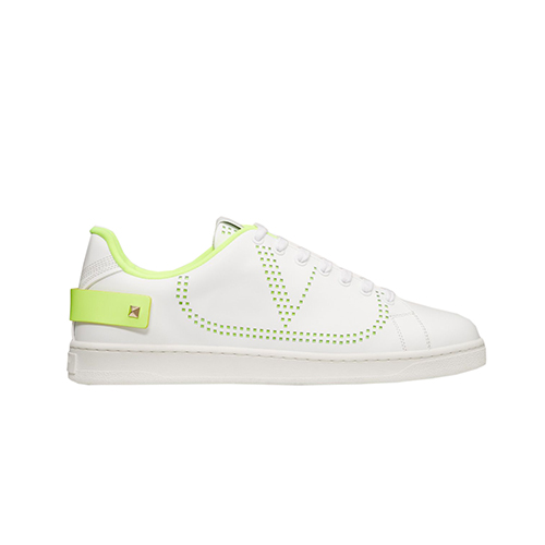 VALENTINO-TY2S0C0 발렌티노 화이트/라임 송아지 가죽 VLOGO 디테일 BACKNET 스니커즈 남여공용