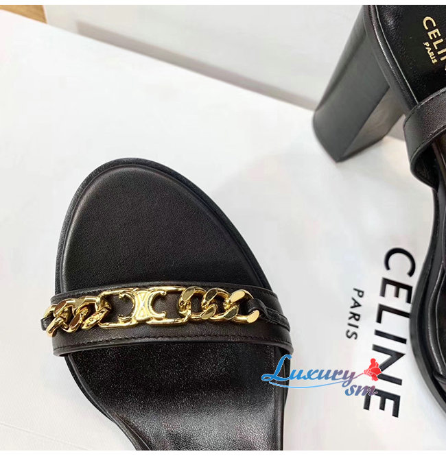 CELINE-3368319 셀린느 블랙 카프스킨 TRIOMPHE 샌들