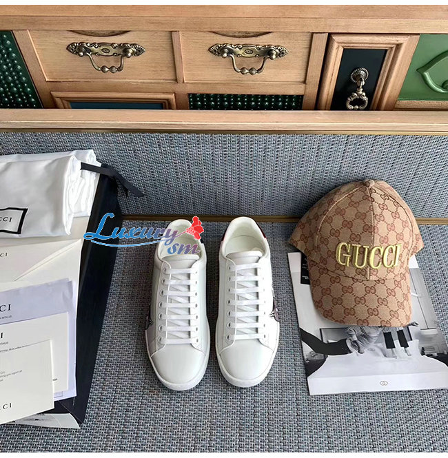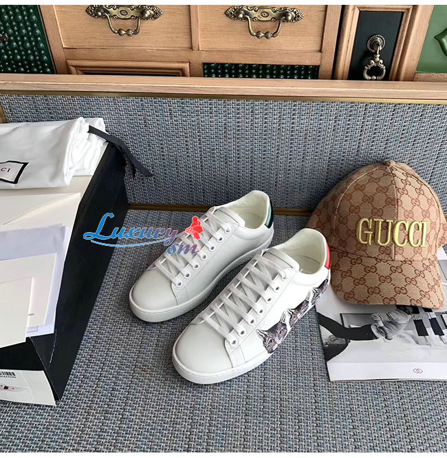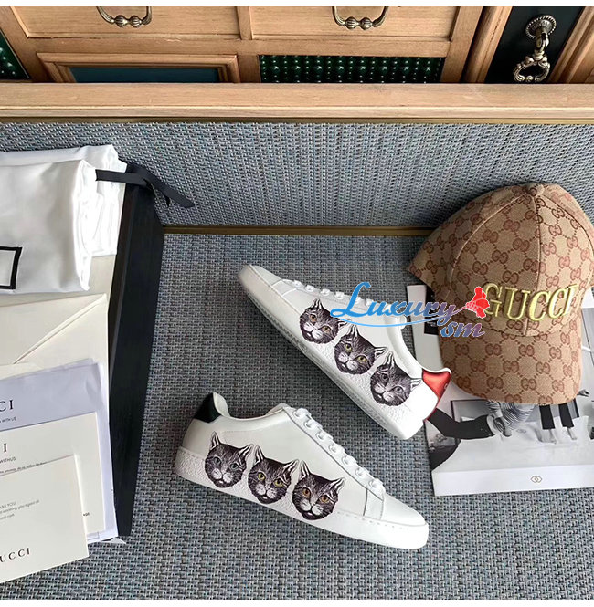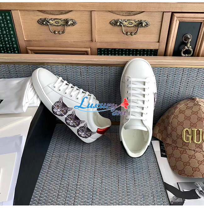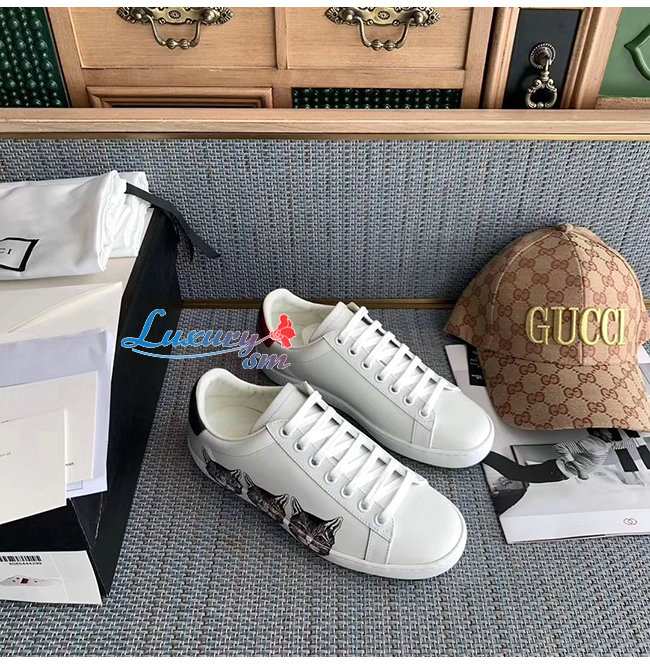 GUCCI-577147 9090 구찌 에이스 화이트 가죽 미스틱 캣 스니커즈 남여공용