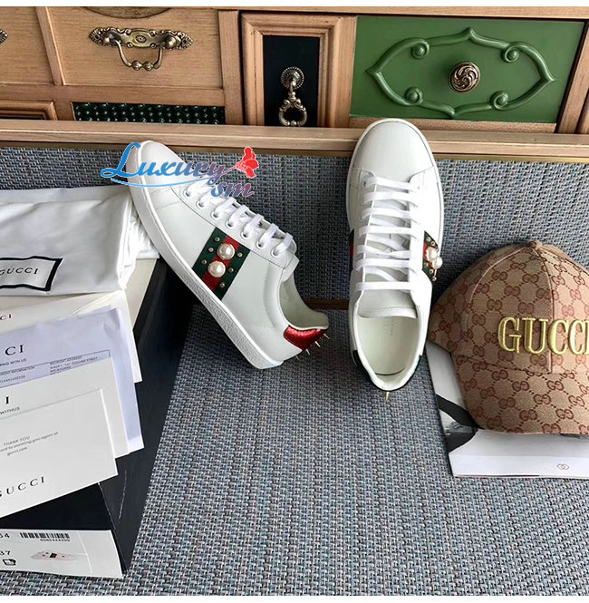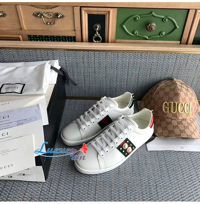 GUCCI-431887 9064 구찌 에이스 화이트 가죽 스터드 스니커즈 남여공용