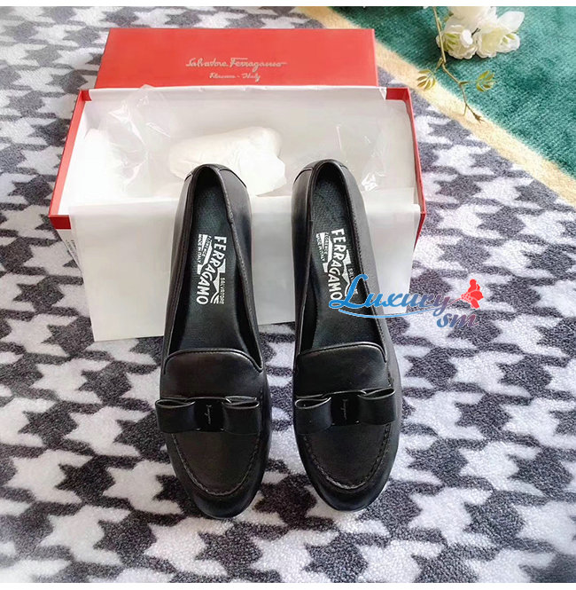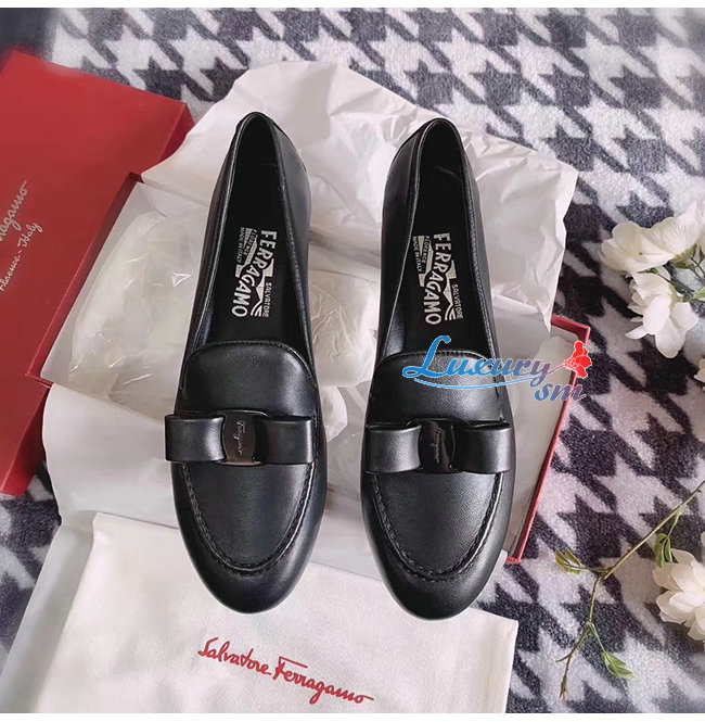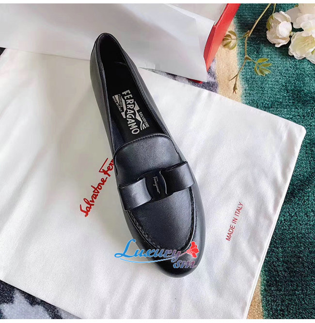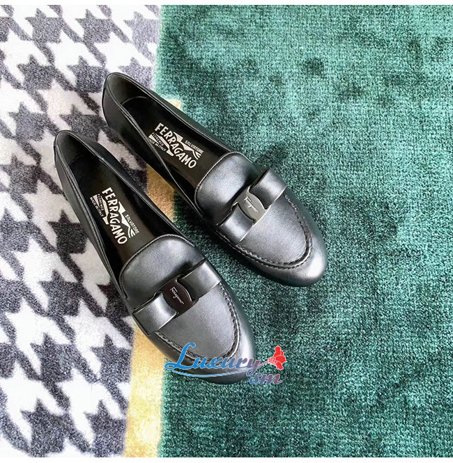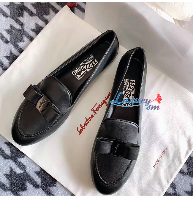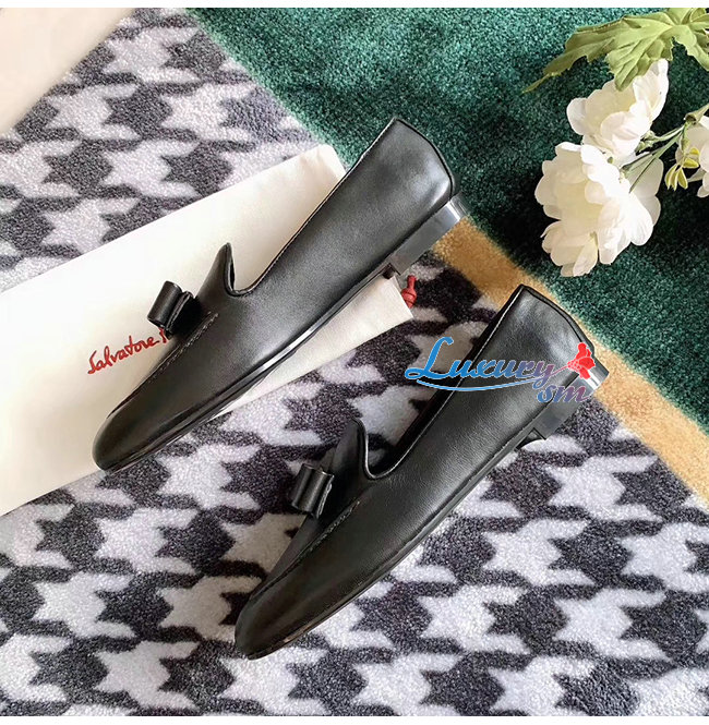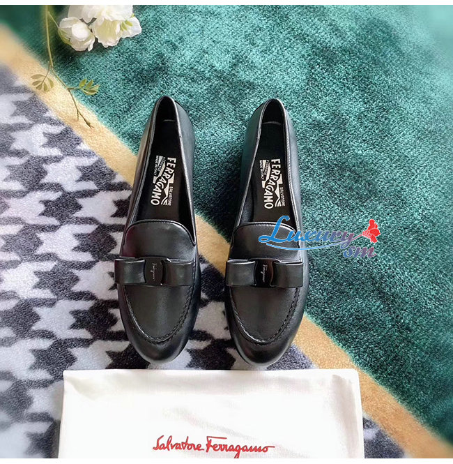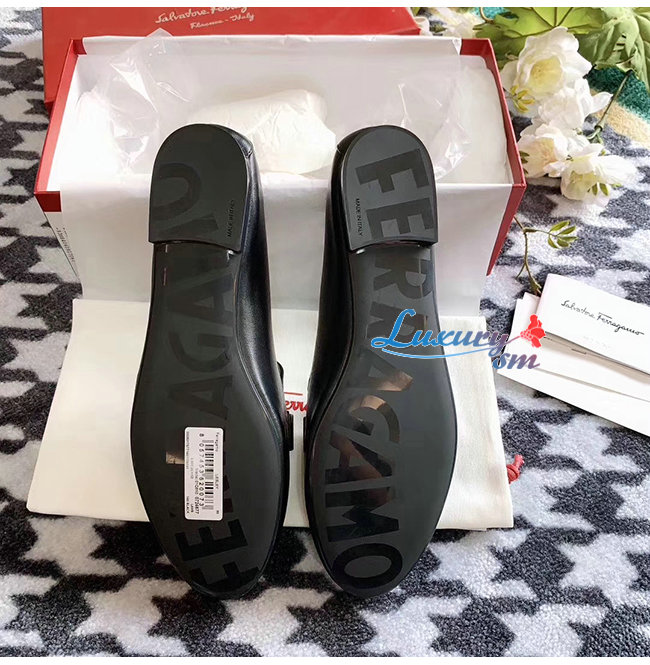 Ferragamo-01Q810 페라가모 블랙 나파 가죽 바라 보우 모카신