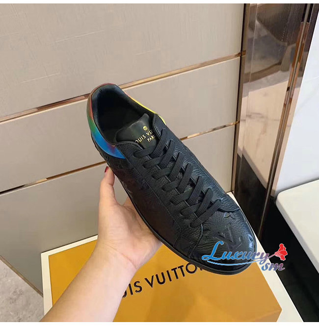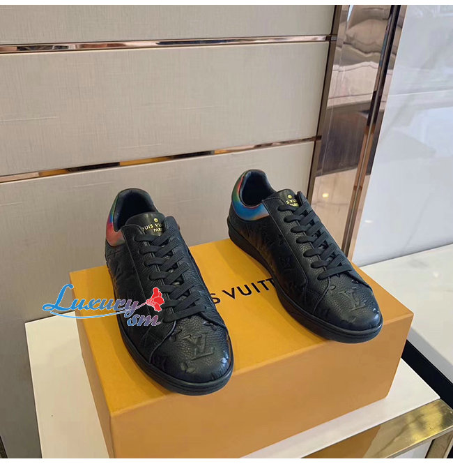LOUIS VUITTON-1A7S7A 루이비통 블랙 모노그램 엠보스드 그레인 송아지 가죽 룩셈부르크 스니커즈
