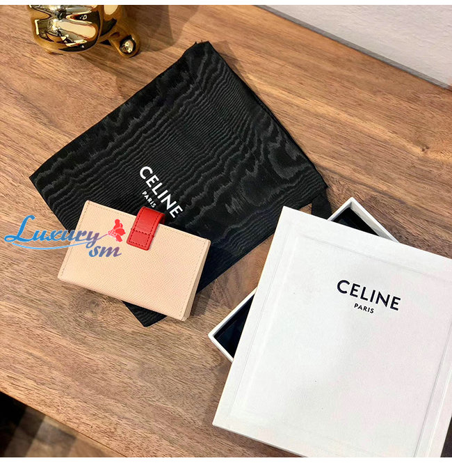 [스페셜오더]CELINE-10B693 셀린느 파우더/레드 카프스킨 아코디언 카드 홀더