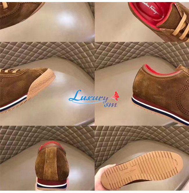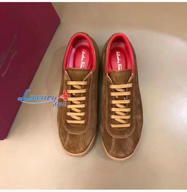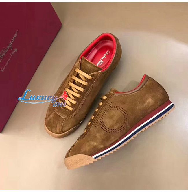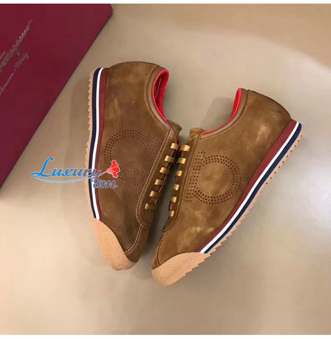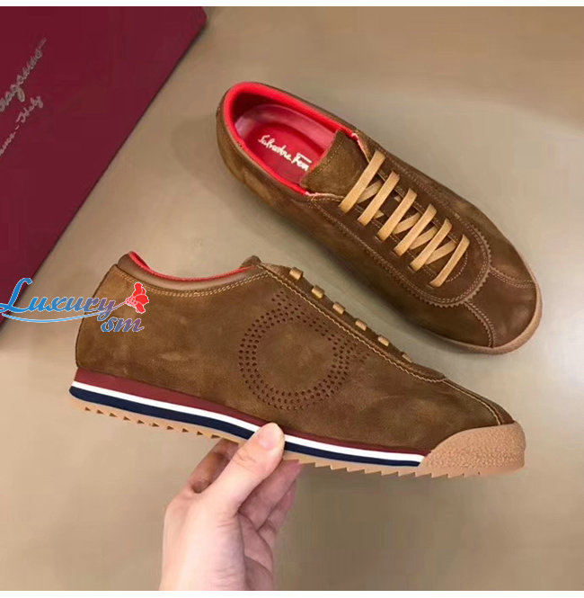 Ferragamo-02C025 페라가모 브라운 스웨이드 가죽 간치니 스니커즈