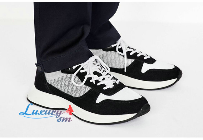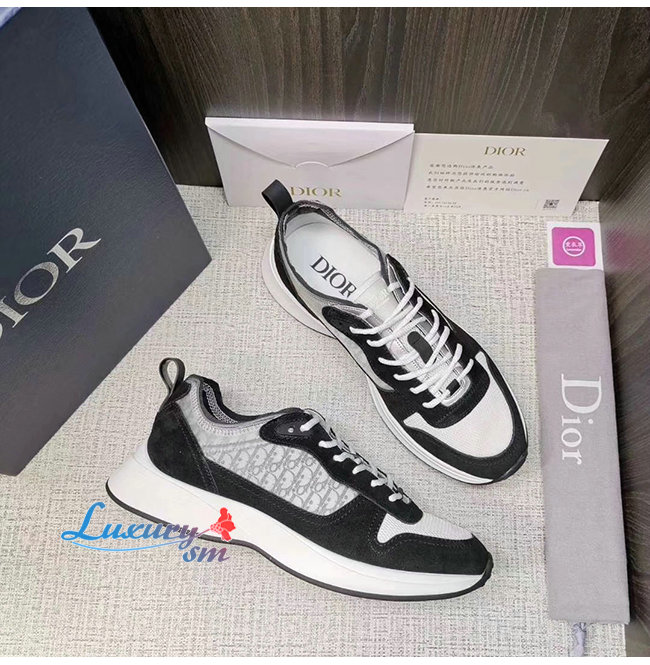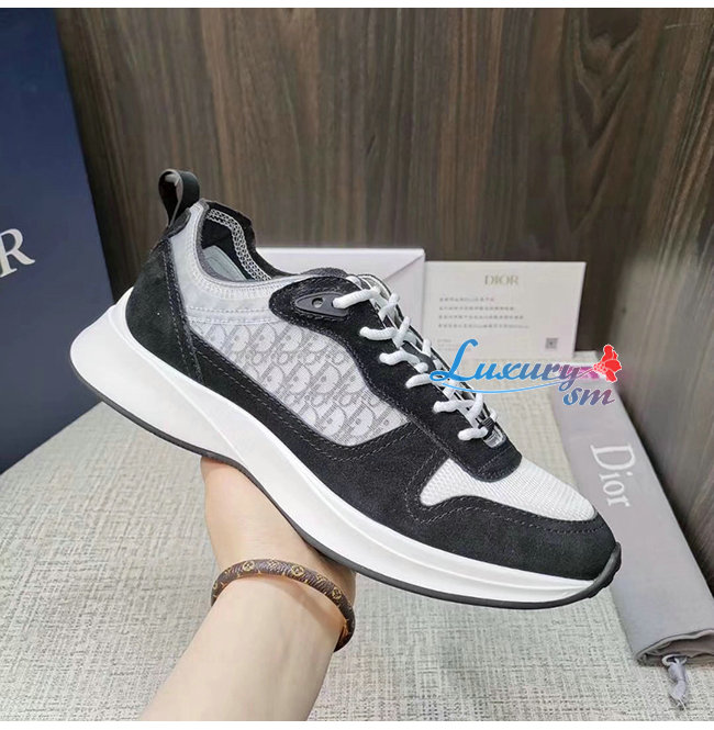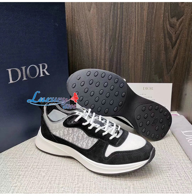 DIOR-3SN259 디올 블랙 DIOR OBLIQUE 패턴 스웨이드 B25 러너 스니커즈 남성용