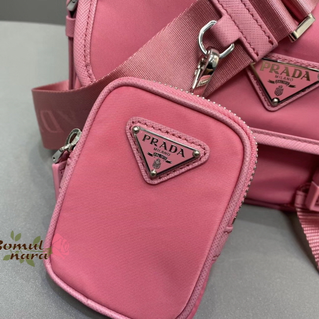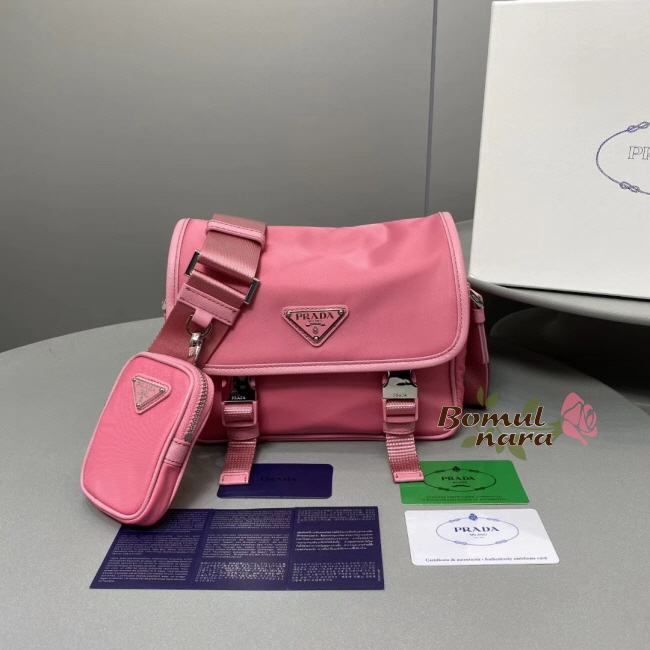 [스페셜오더]PRADA-1BD334 프라다 베고니아 핑크 나일론 및 사피아노 가죽 숄더백
