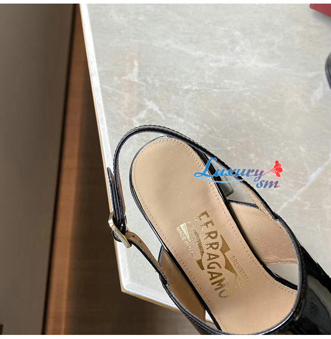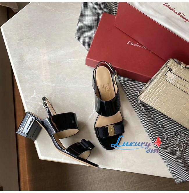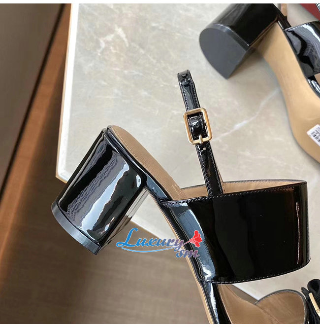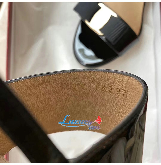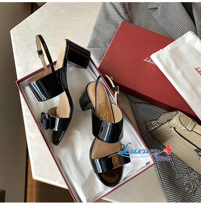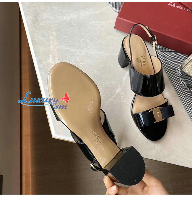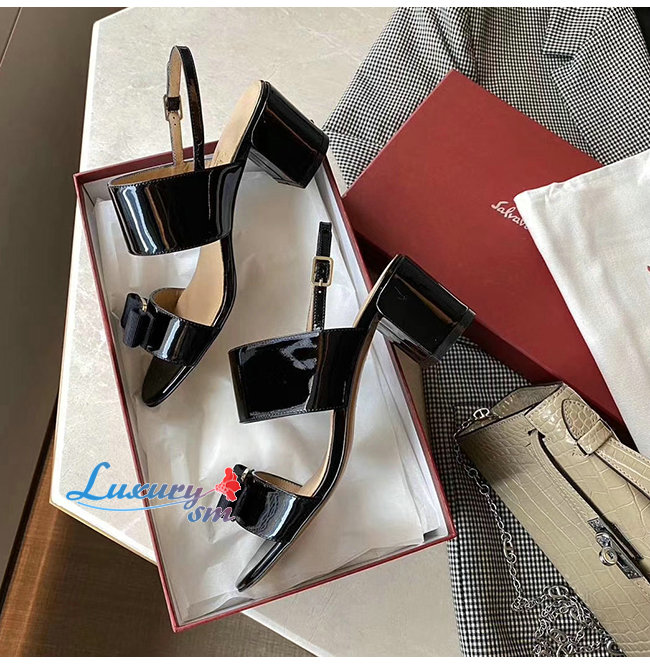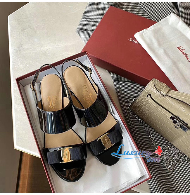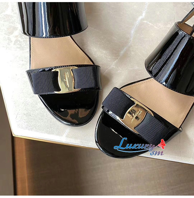 Ferragamo-01Q976 페라가모 블랙 페이턴트 가죽 바라 보우 샌들