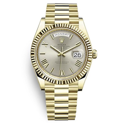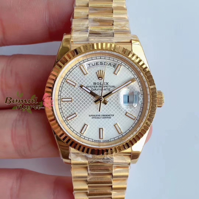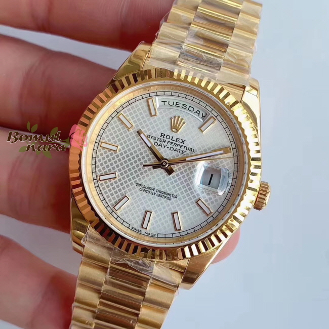 [스페셜오더]ROLEX-롤렉스 데이-데이트 옐로우 골드 플루티드 베젤 실버 시계 40mm 가격 : 780,000원