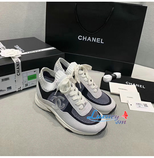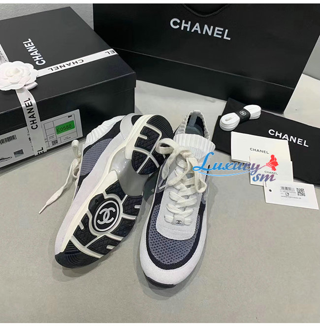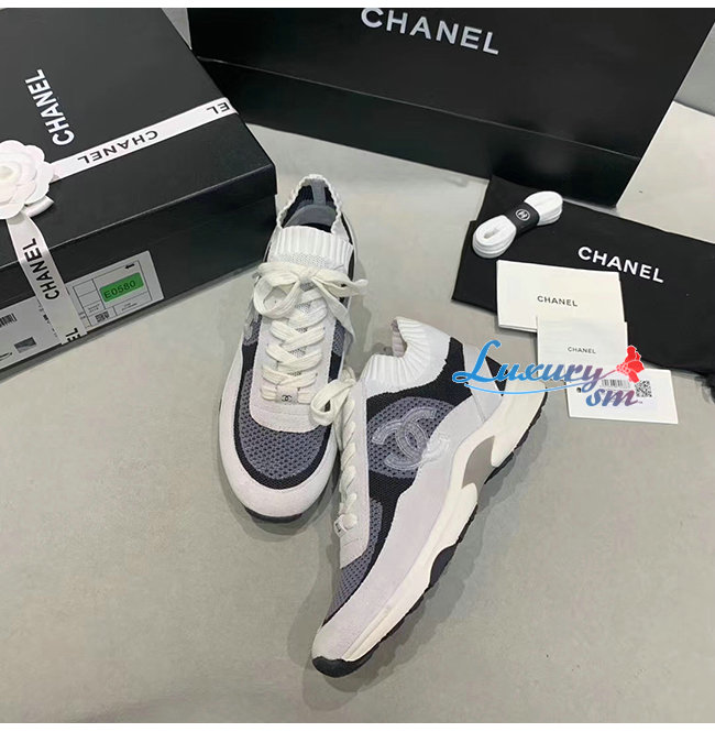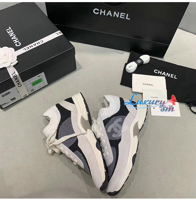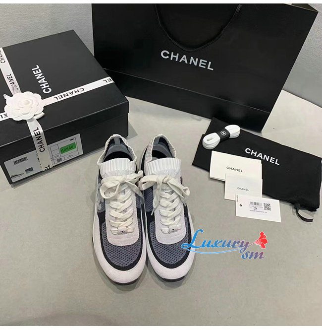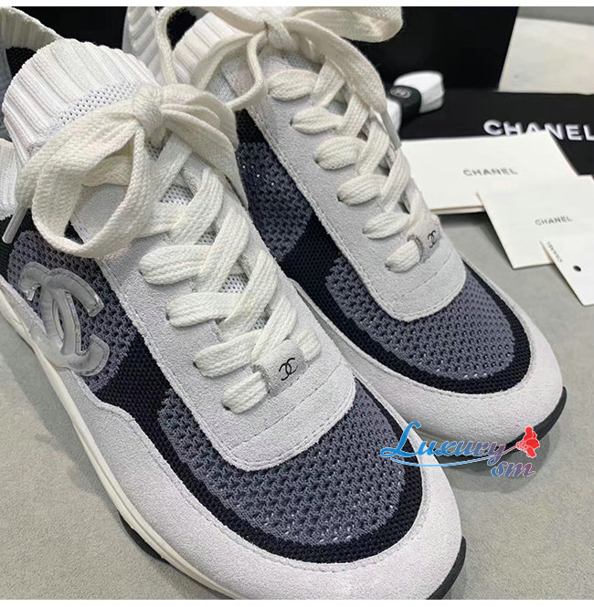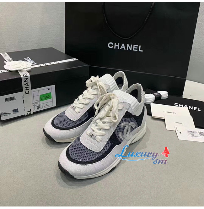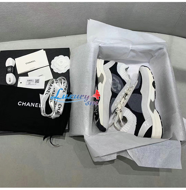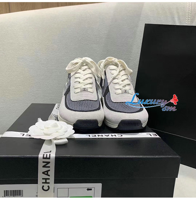 CHANEL-G36258 샤넬 블랙/화이트 패브릭 스웨이드 카프스킨 스니커즈