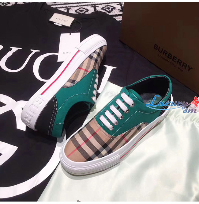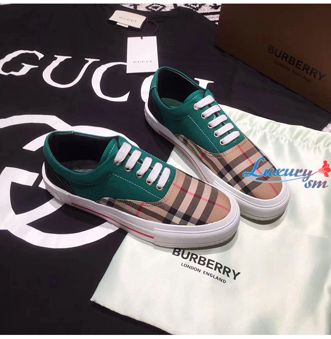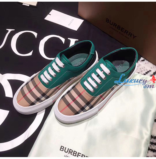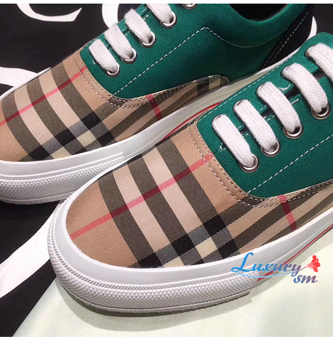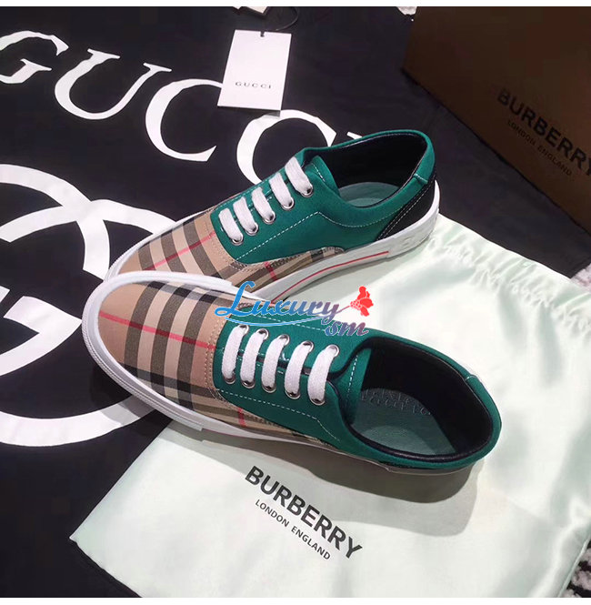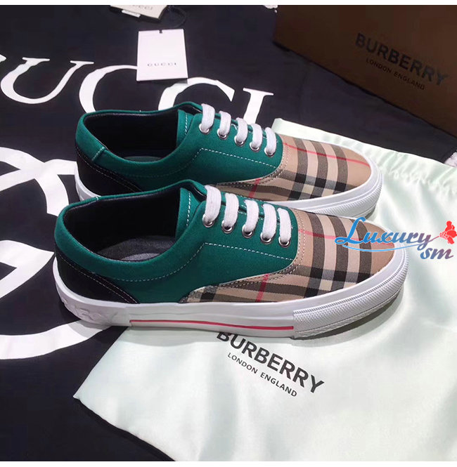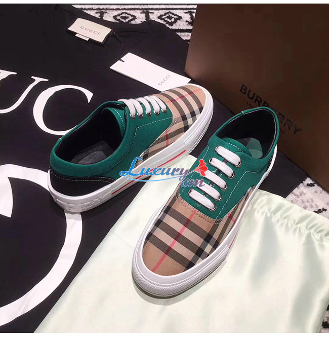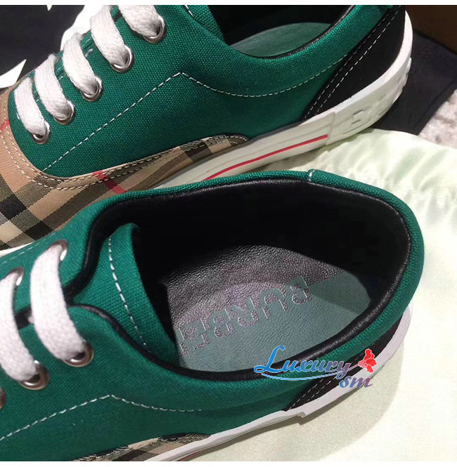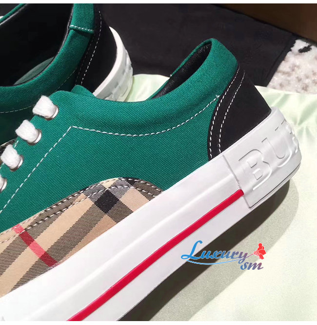 BURBERRY-80248821 버버리 그린 빈티지 체크 코튼 캔버스 스웨이드 스니커즈 남여공용