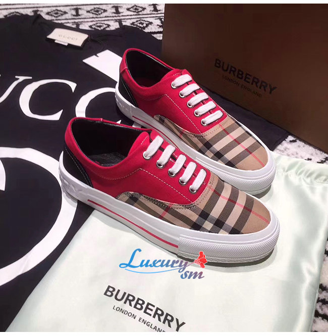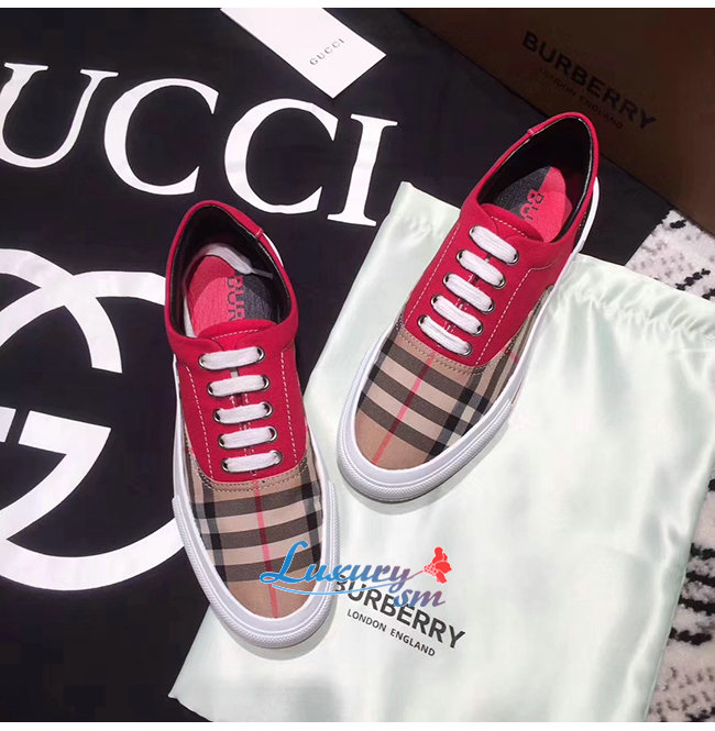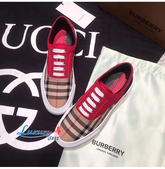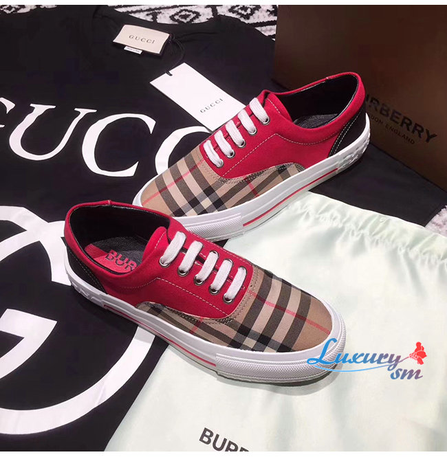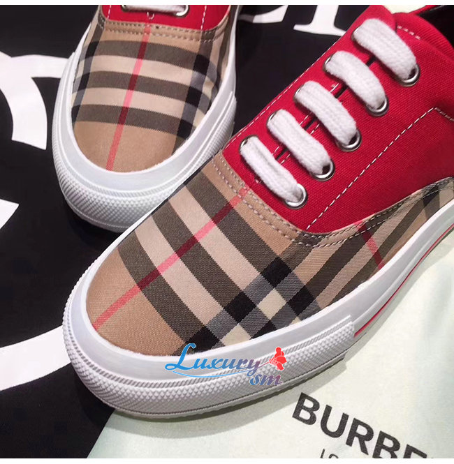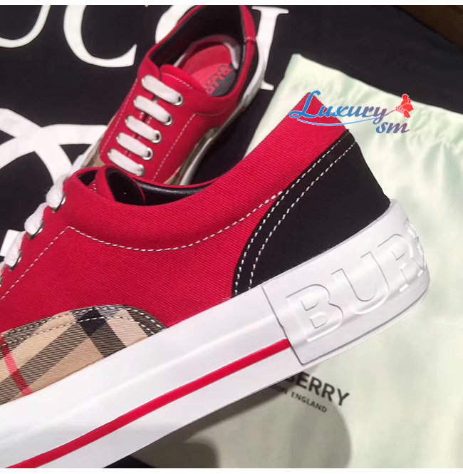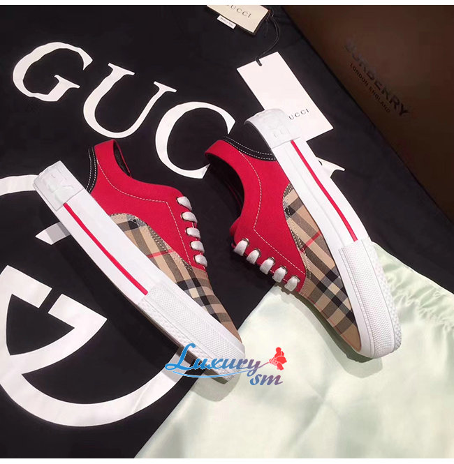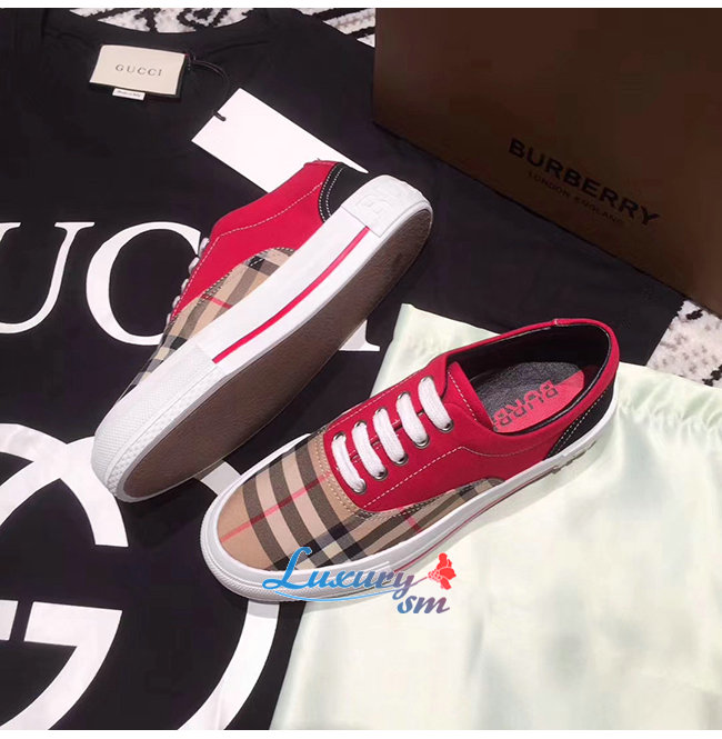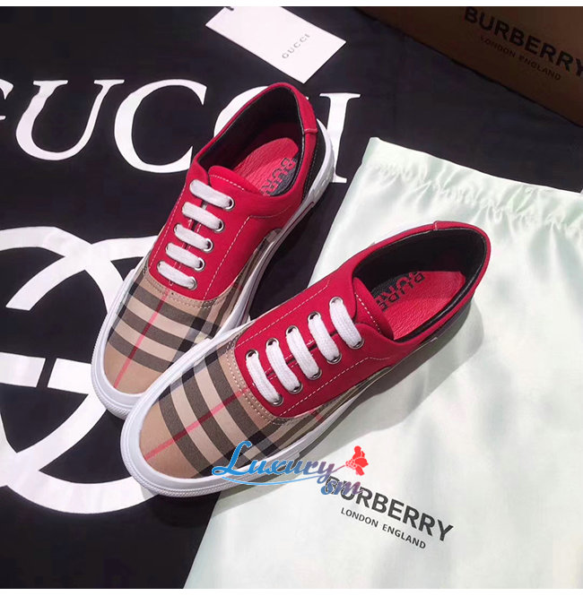 BURBERRY-80257921 버버리 레드 빈티지 체크 코튼 캔버스 스웨이드 스니커즈 남여공용