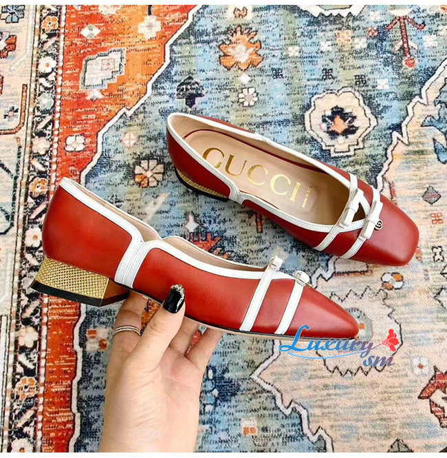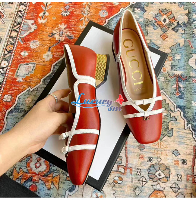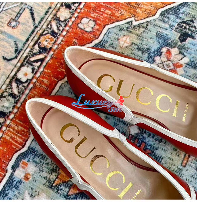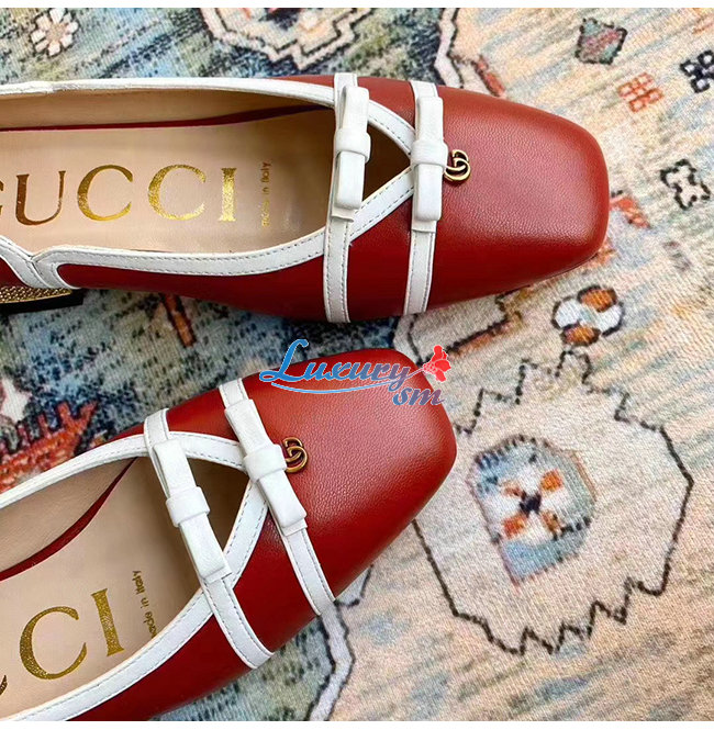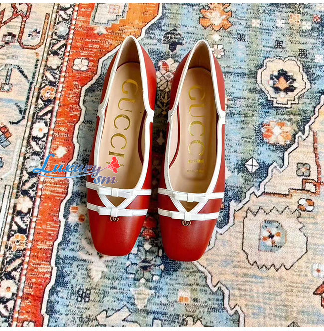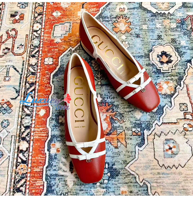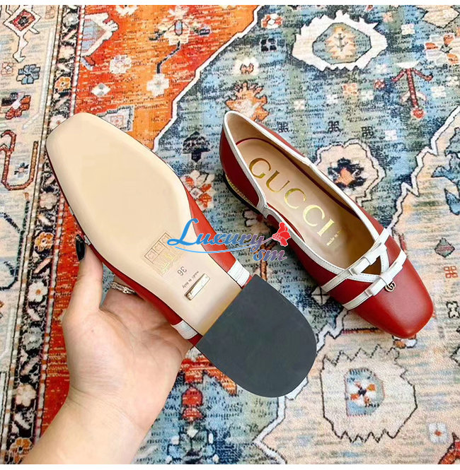 GUCCI-608940 구찌 레드 가죽 발레 펌프스