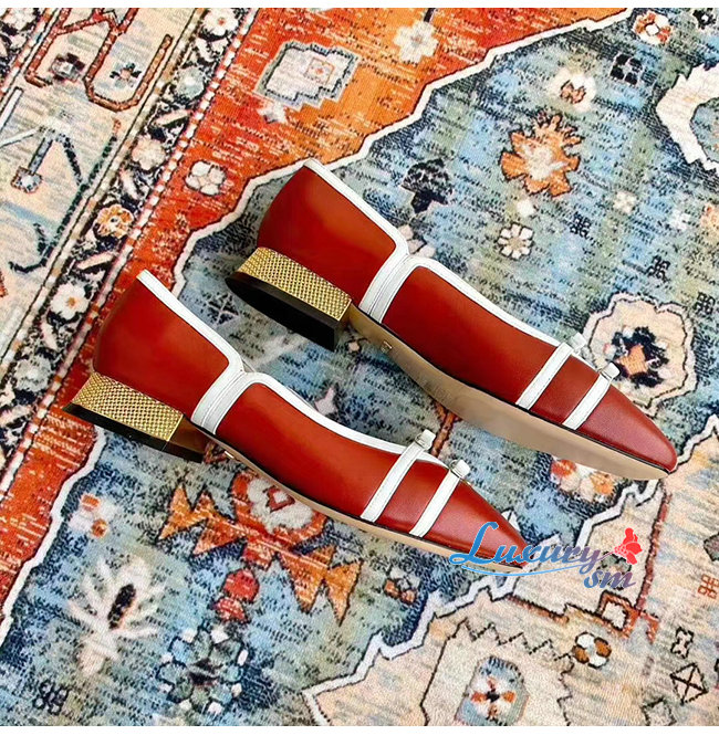 레드/화이트 가죽소재의 발레 펌프스,텍스처드 메탈