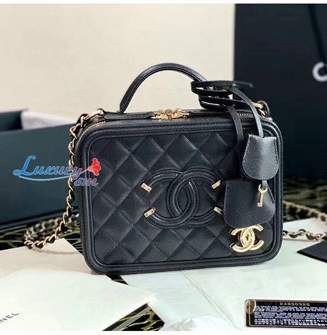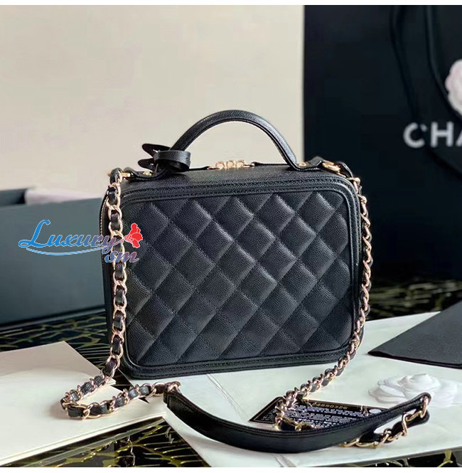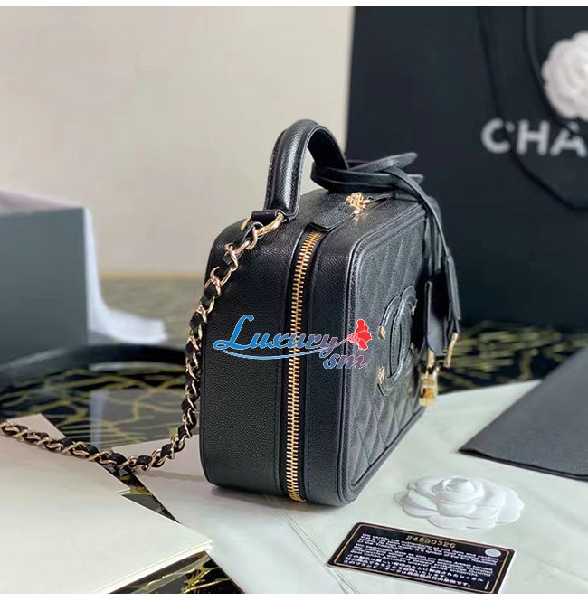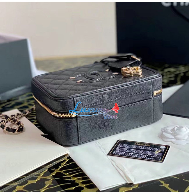 [스페셜오더]CHANEL-A93343 샤넬 블랙 그레인드 램스킨 골드메탈 코스메틱 케이스