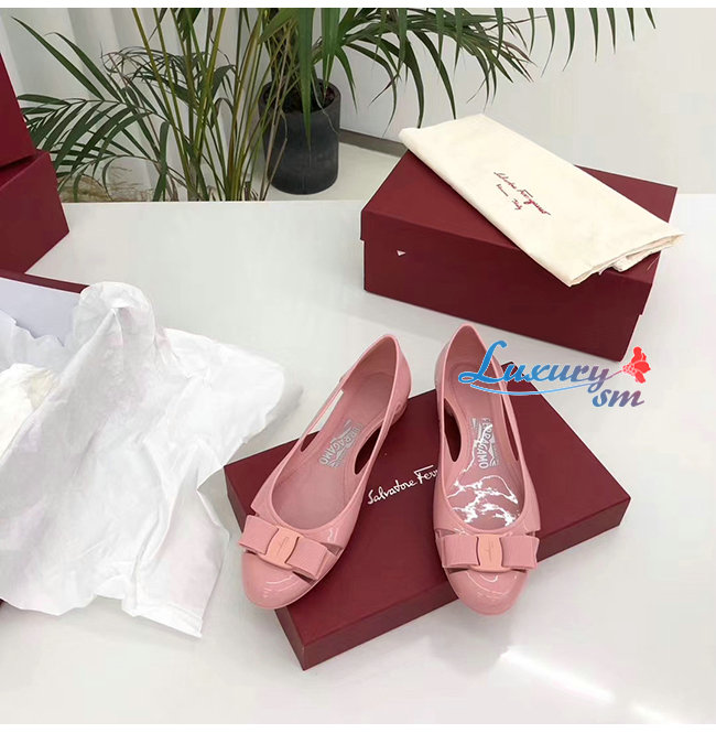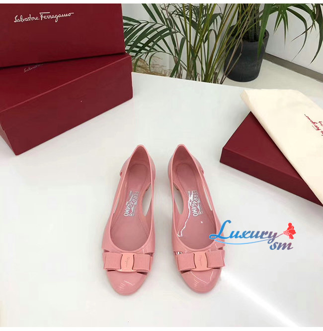 Ferragamo-035656 페라가모 핑크 PVC 바라 보우 슬립