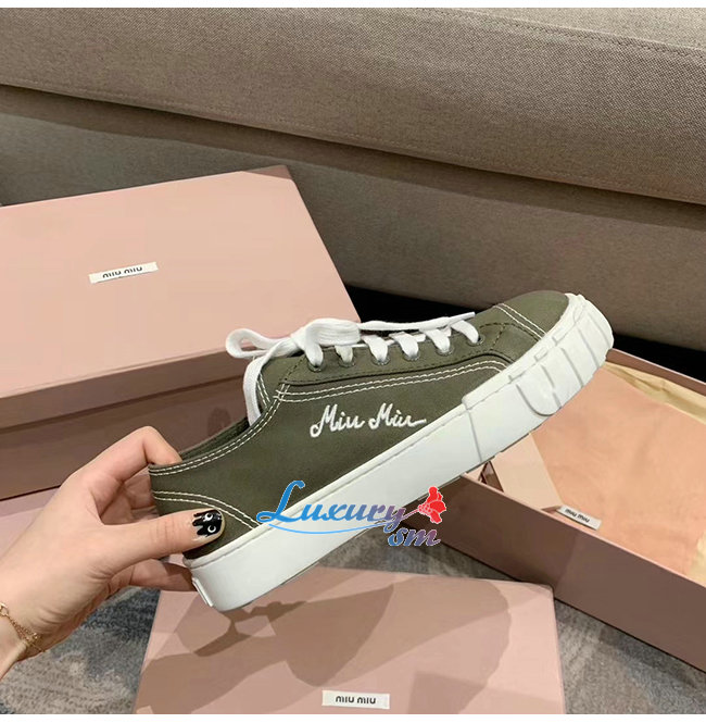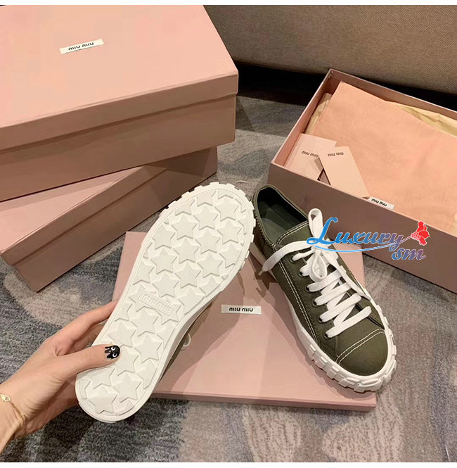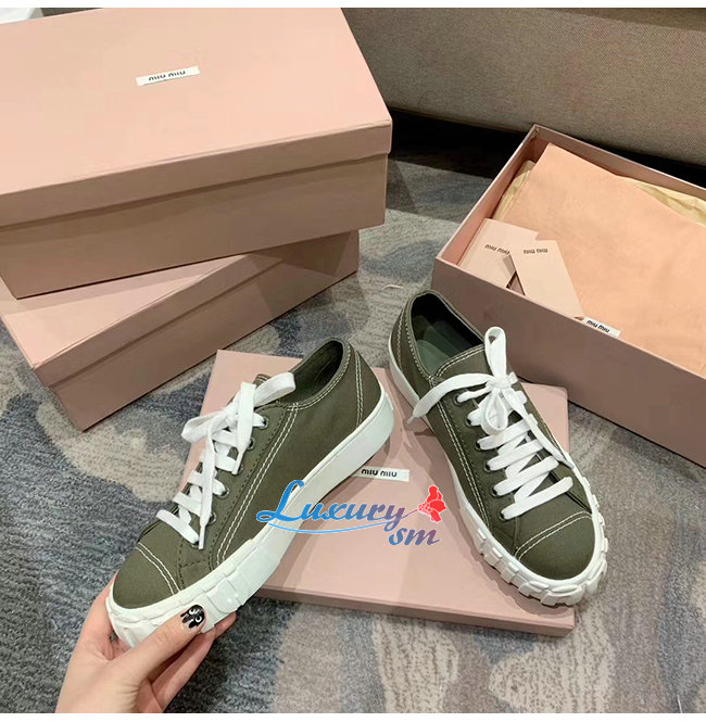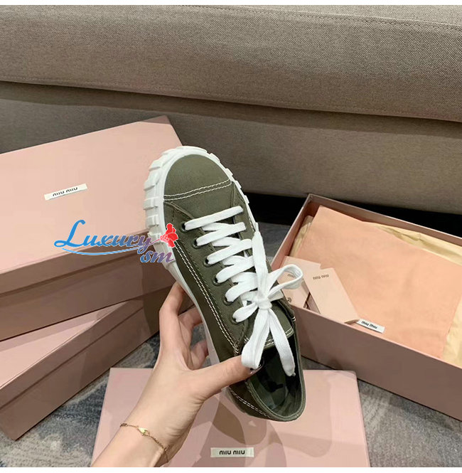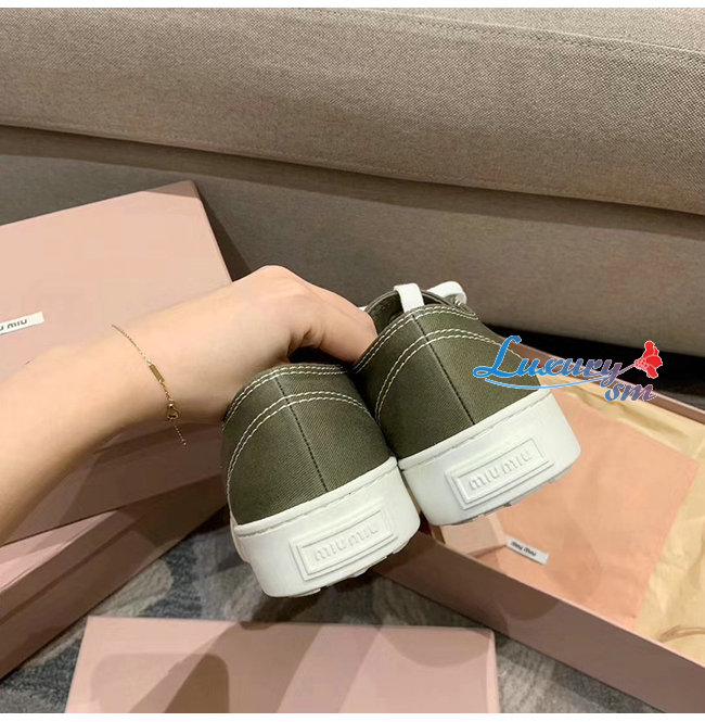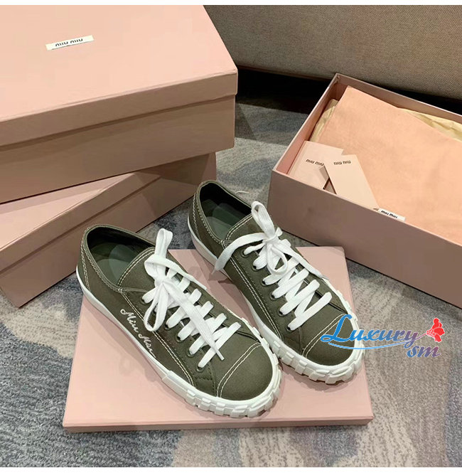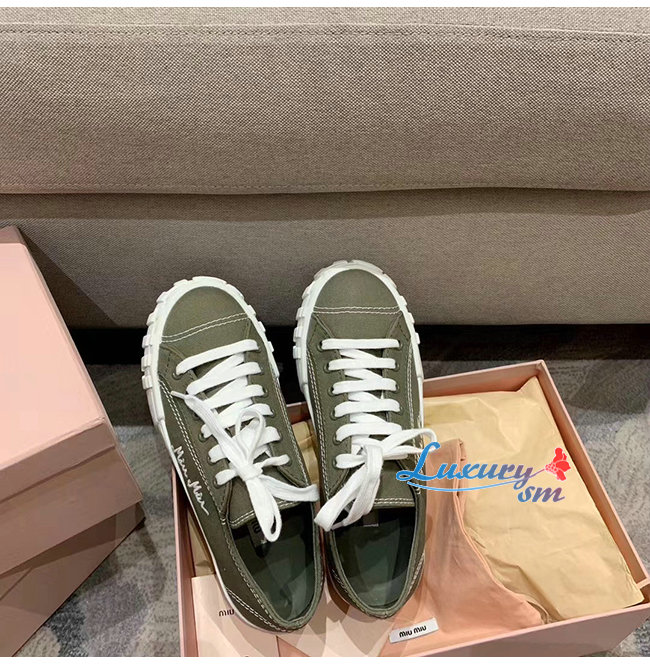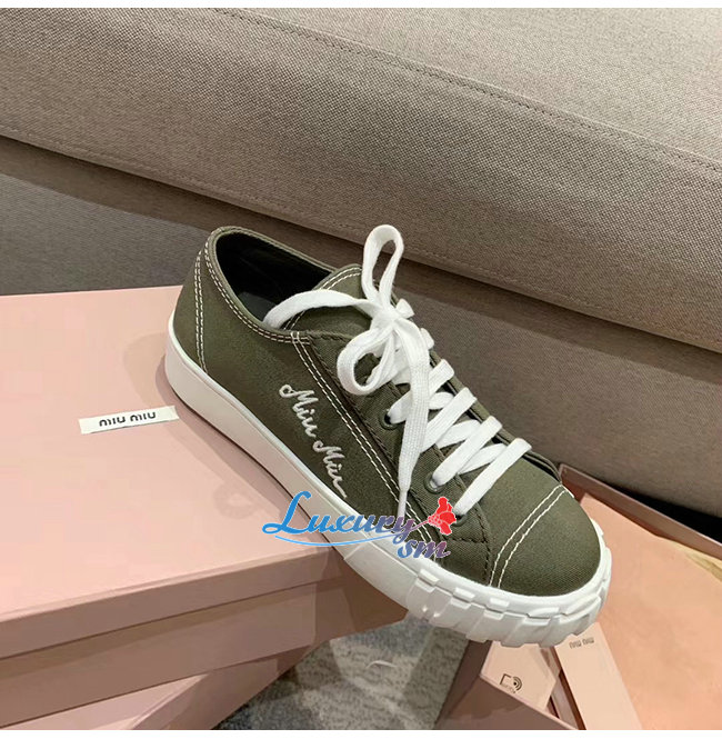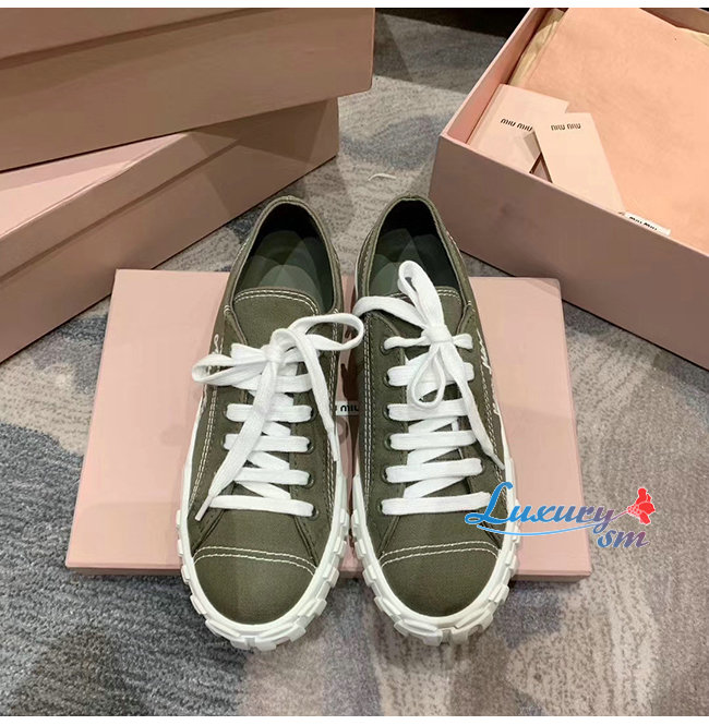 MIUMIU-5E970C 미우미우 카키 개버딘 스니커즈