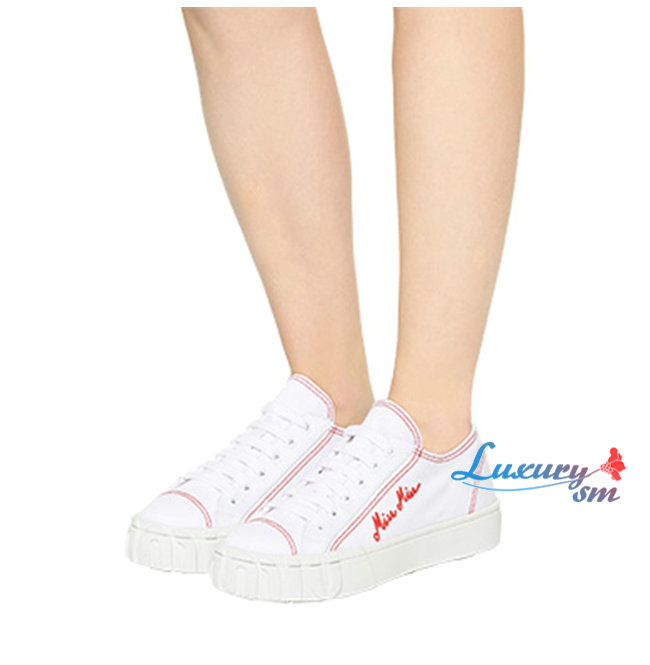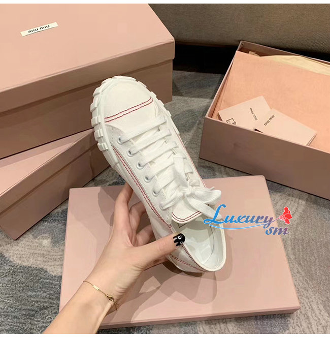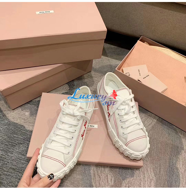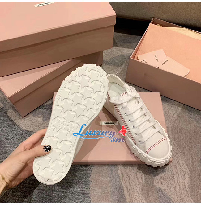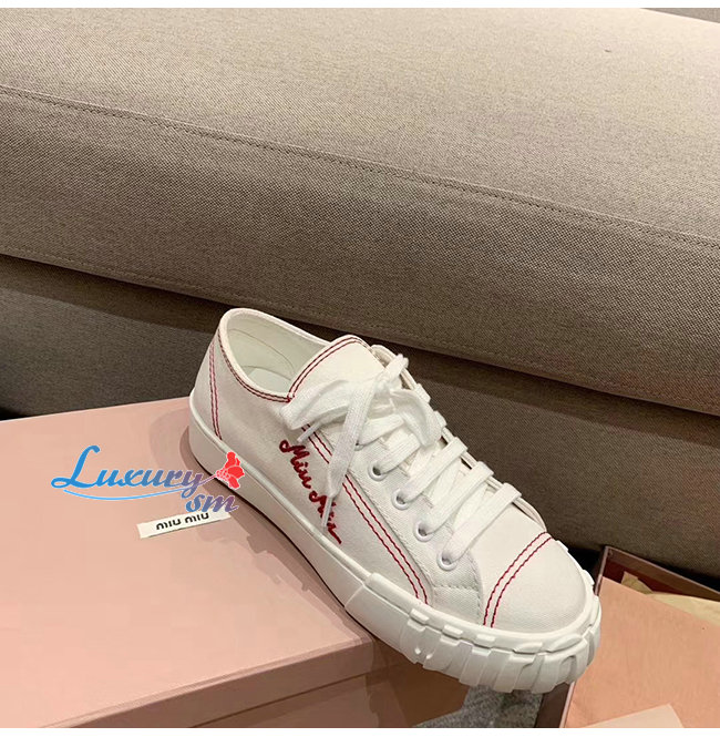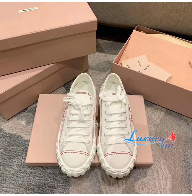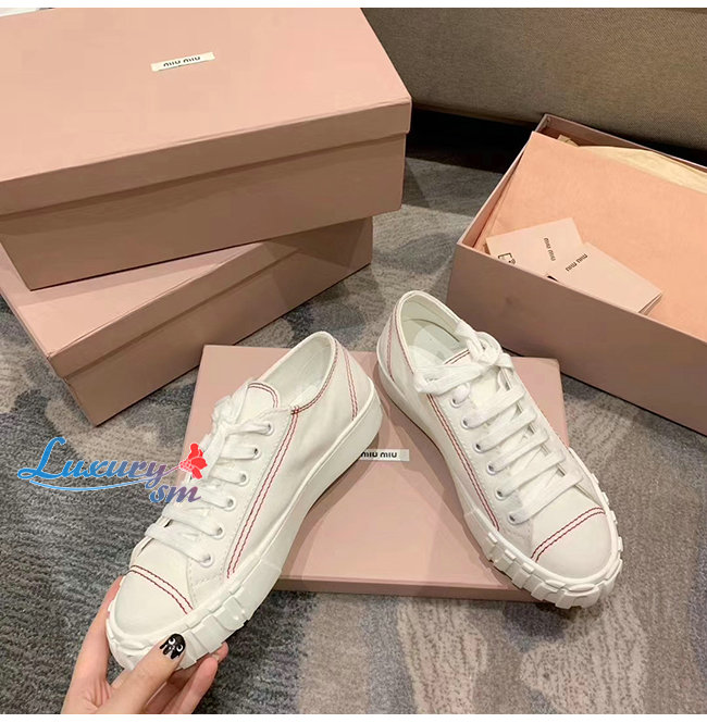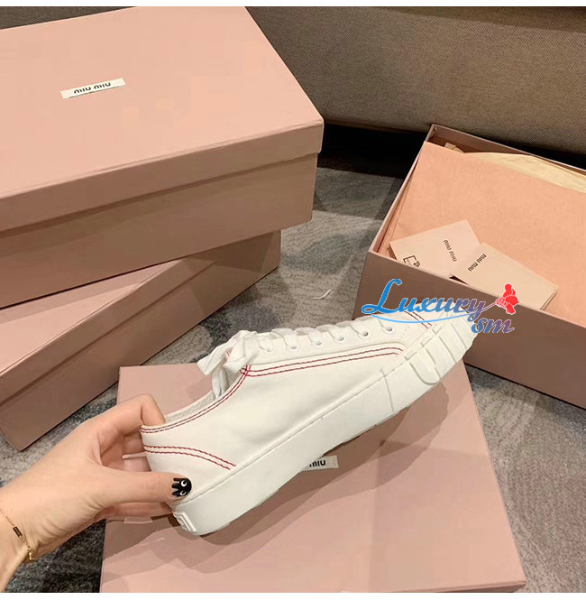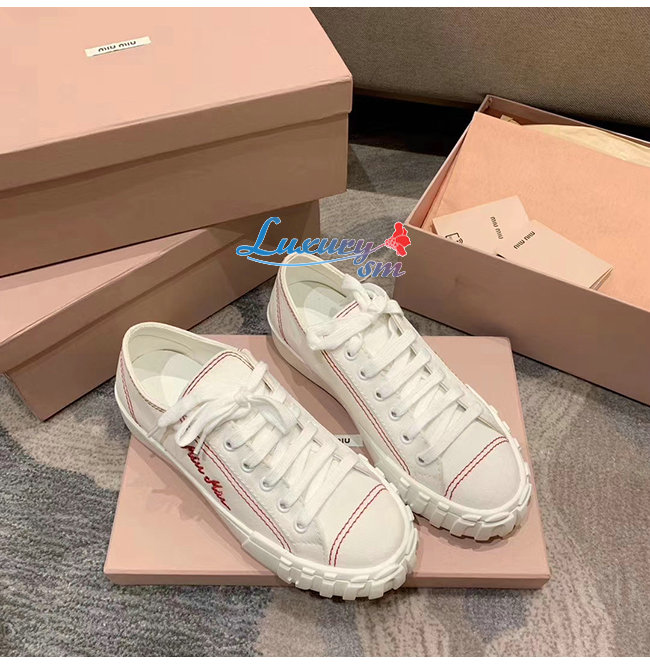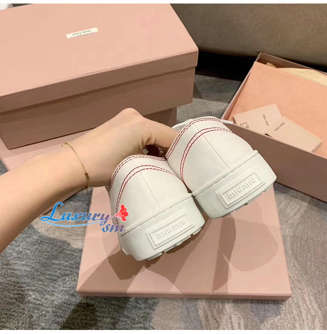 MIUMIU-5E970C 미우미우 화이트 개버딘 스니커즈