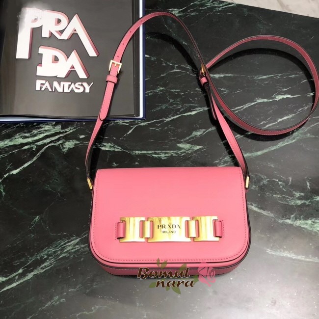 [스페셜오더]PRADA-1BD244 프라다 페탈 핑크 로고 메탈 버클 플랩백