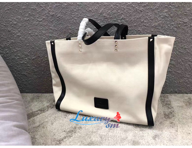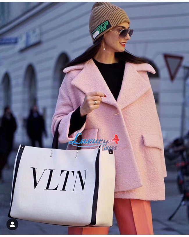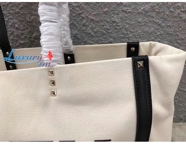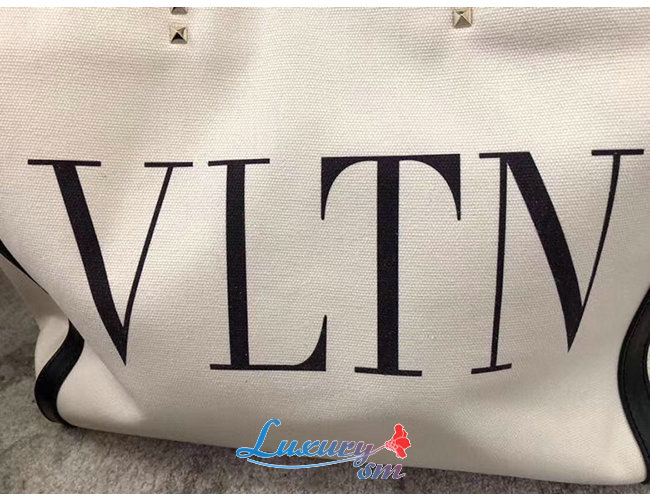 VLTN 프린트 및 가죽 디테일을 가미한 캔버스 소재의