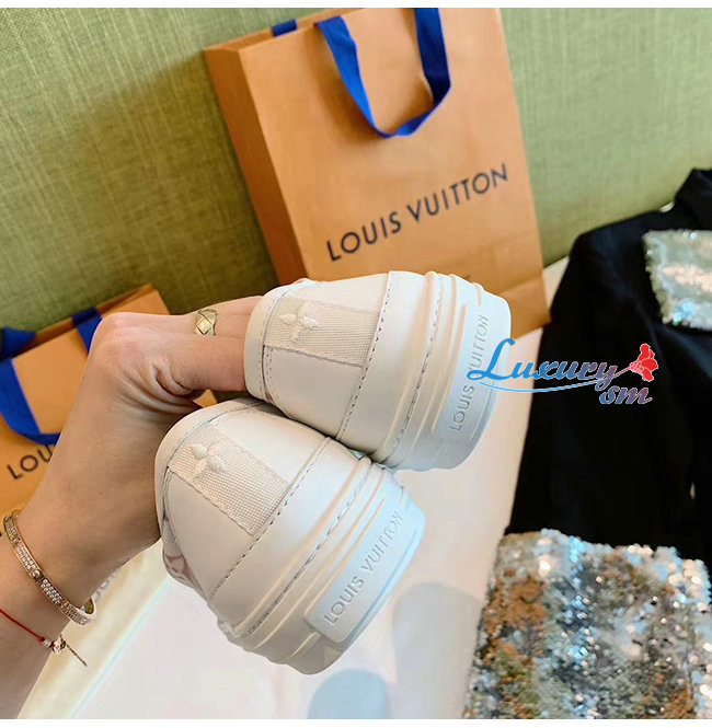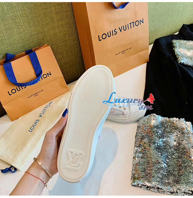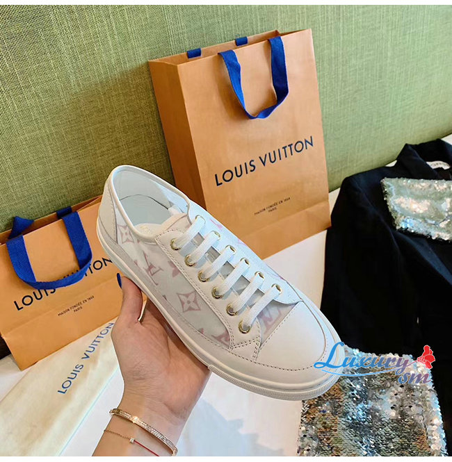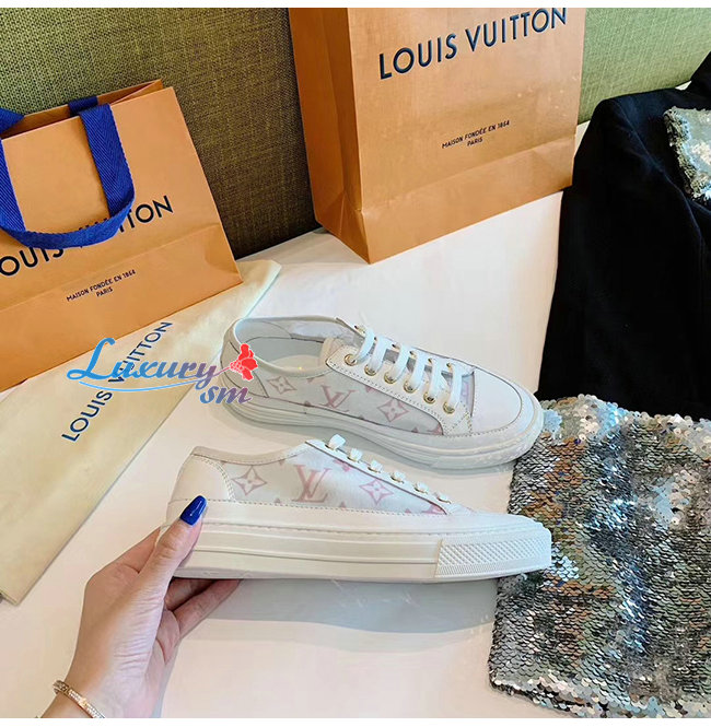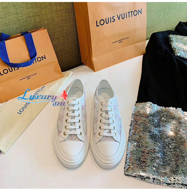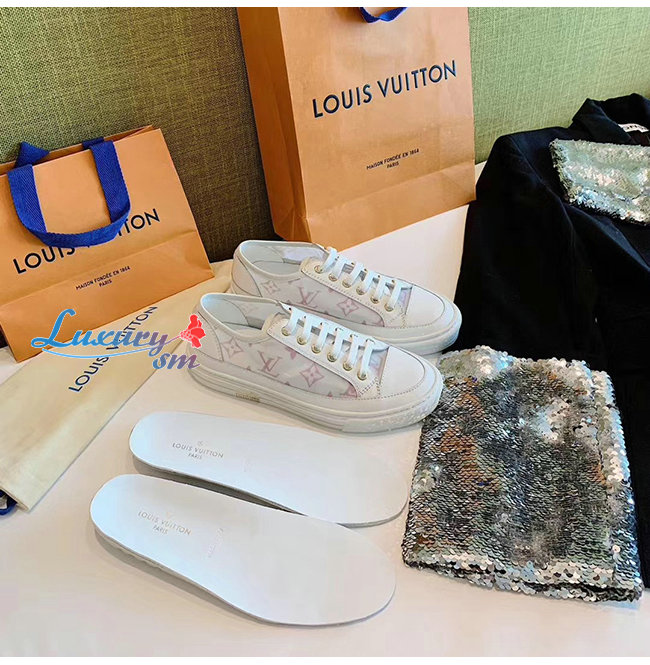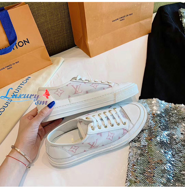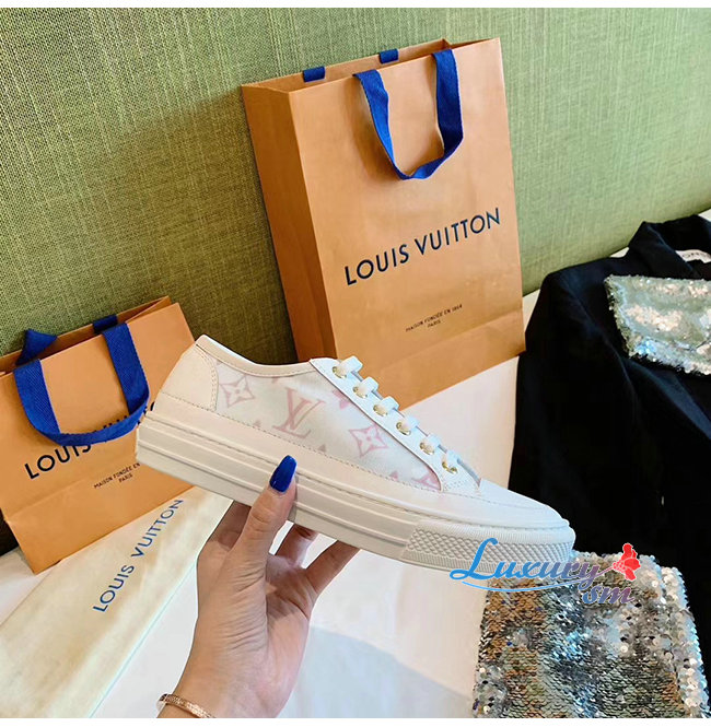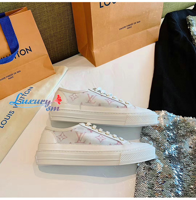 LOUIS VUITTON-1A87EE 루이비통 화이트/핑크 송아지 가죽 테그니컬 패브릭 스텔라 스니커즈