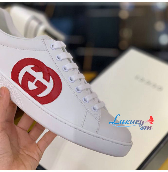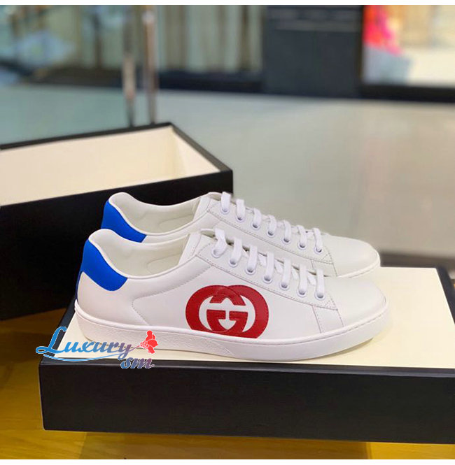 GUCCI-625783 9102 구찌 에이스 화이트 가죽 인터로킹 G 디테일 스니커즈 남여공용