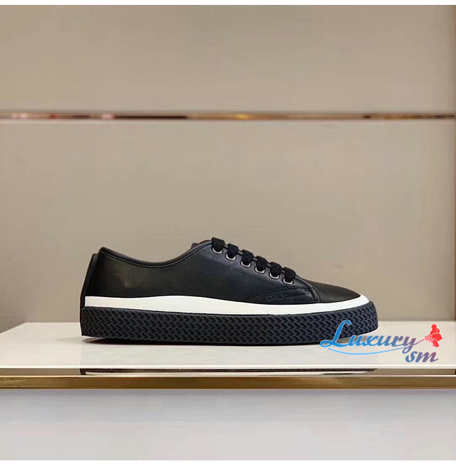 Ferragamo-02C115 페라가모 블랙 카프스킨 텍스터라이즈 솔 스니커즈