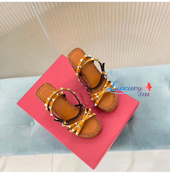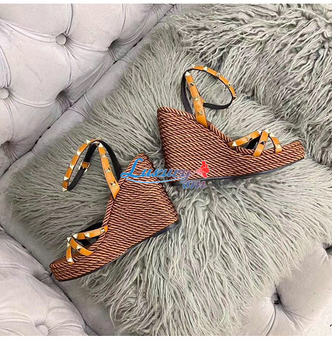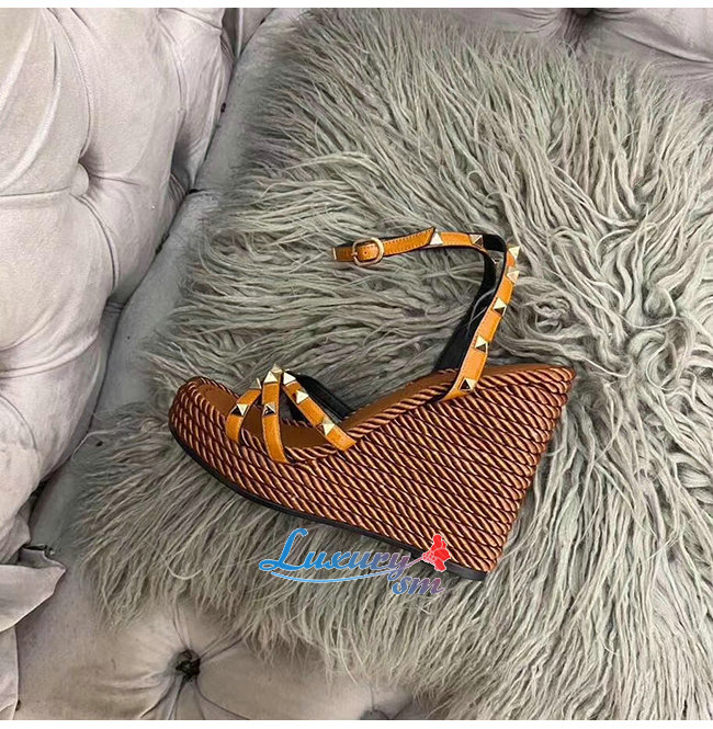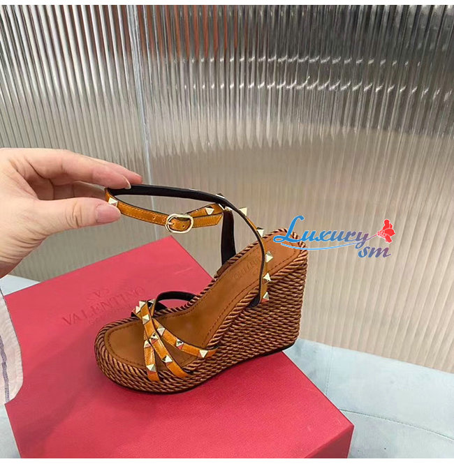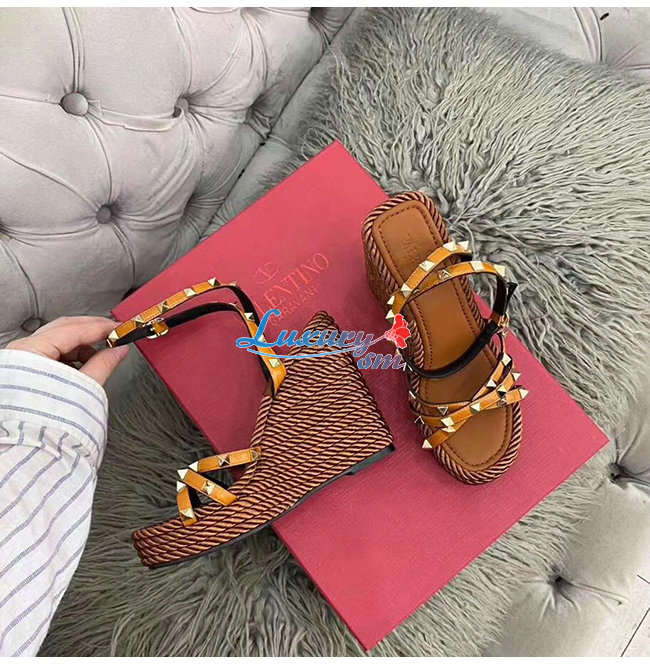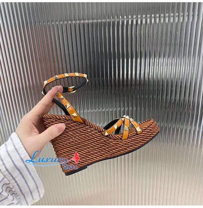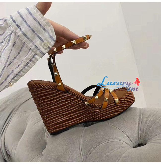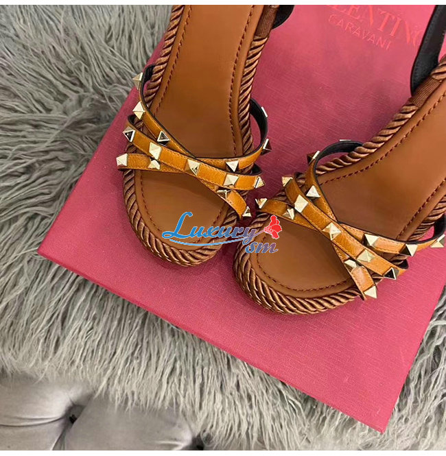 VALENTINO-SW2S0N72 발렌티노 브라운 소가죽 락스터드 스트랩 웨지힐 샌들