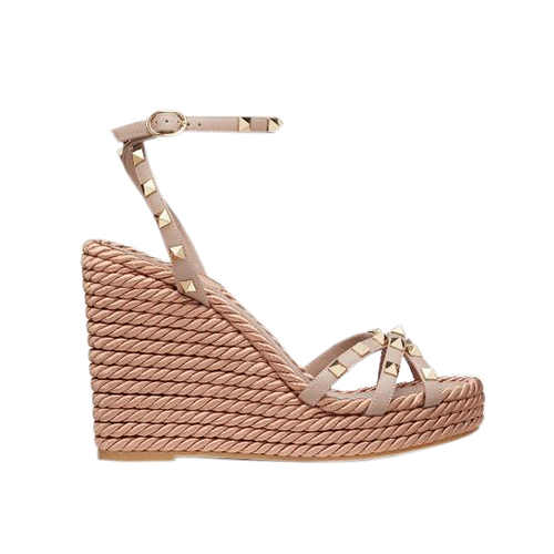 VALENTINO-SW2S0N72 발렌티노 푸드르 소가죽 락스터드 스트랩 웨지힐 샌들
