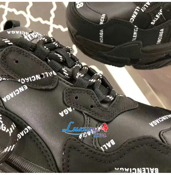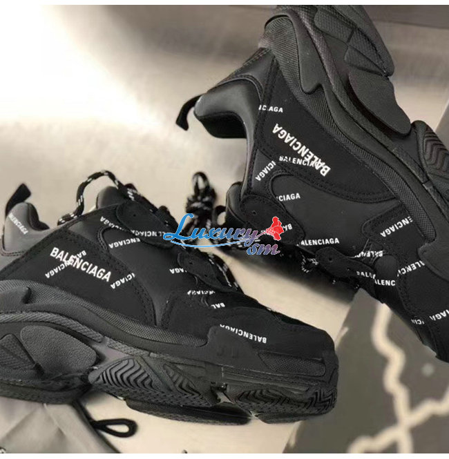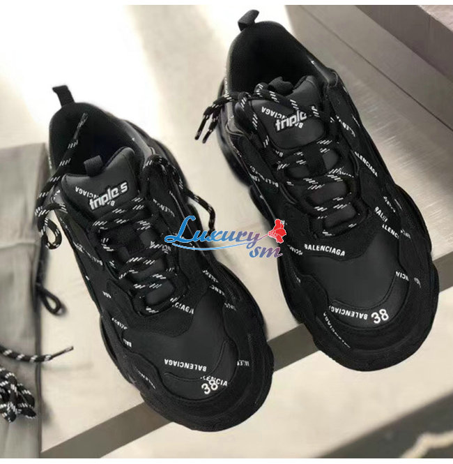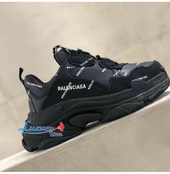 BALENCIAGA-536737 발렌시아가 블랙 올오버 로고 TRIPLE S 스니커즈 남여공용