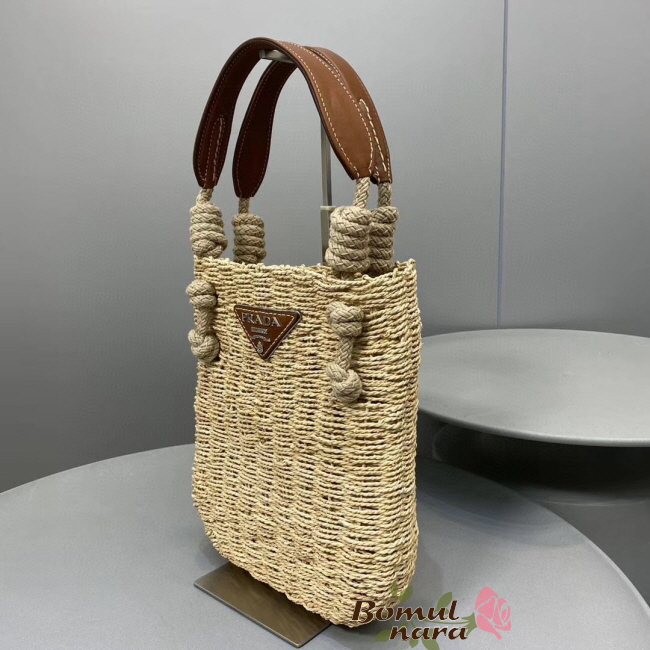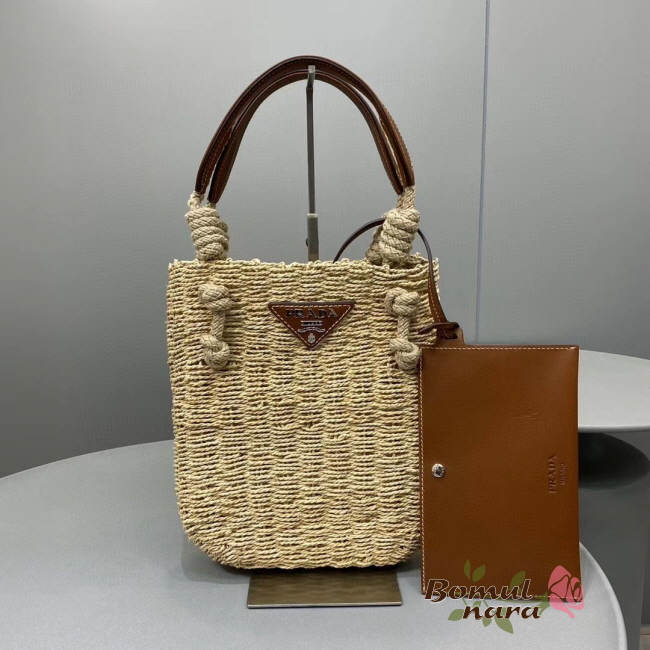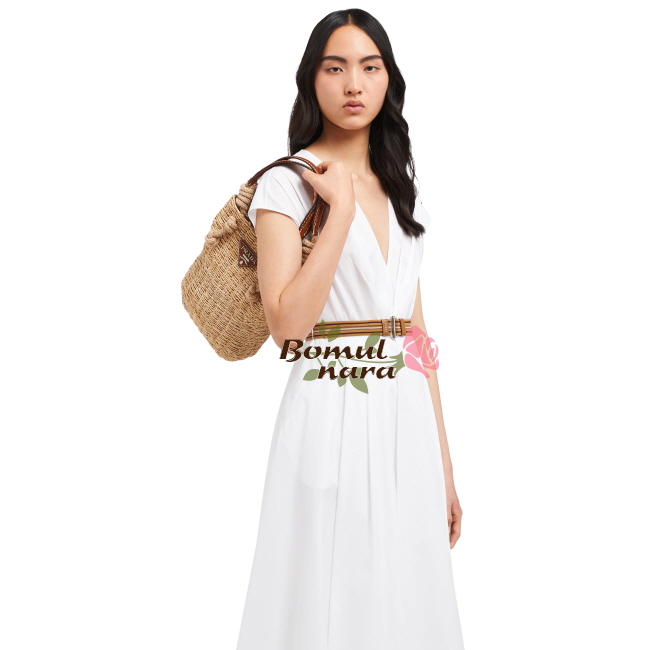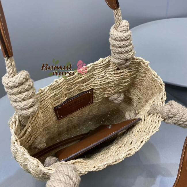 [스페셜오더]PRADA-1BG336 프라다 코냑 메이즈 패브릭 우븐 핸들 토트백