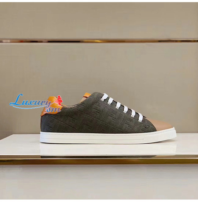 FENDI-7E1350 펜디 카키 캔버스 FF 모티프 스니커즈 남성용