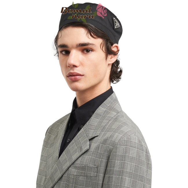 PRADA-2HC202 프라다 블랙 나일론 트라이앵글 로고 베레모