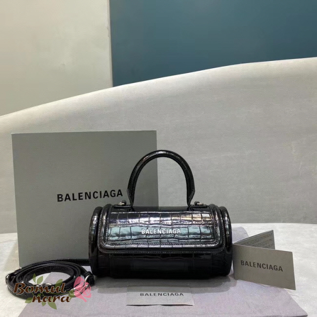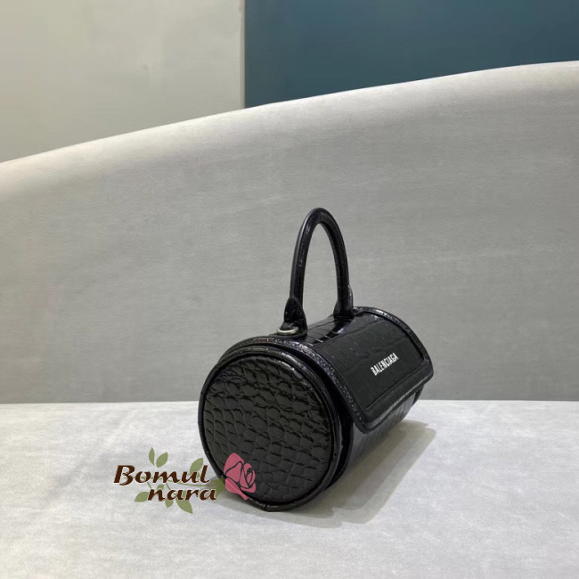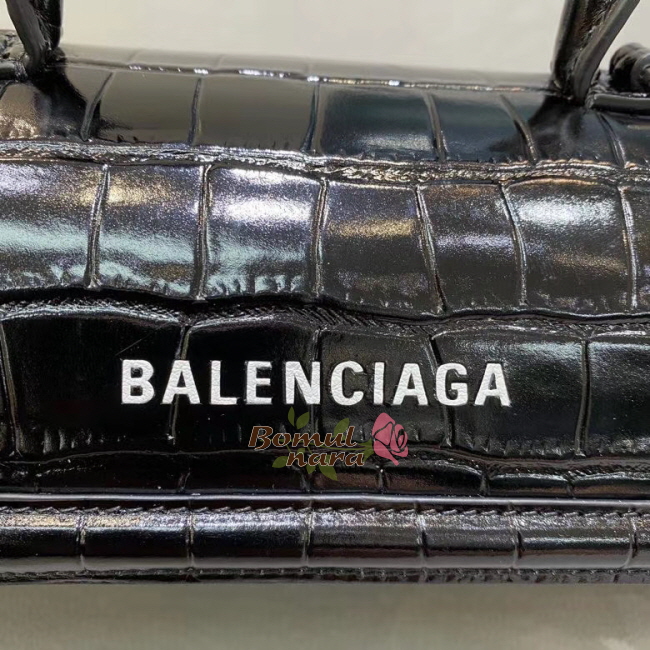 [스페셜오더]BALENCIAGA-597804 발렌시아가 블랙 스몰 Croc Embossed 라운드 탑 핸들백